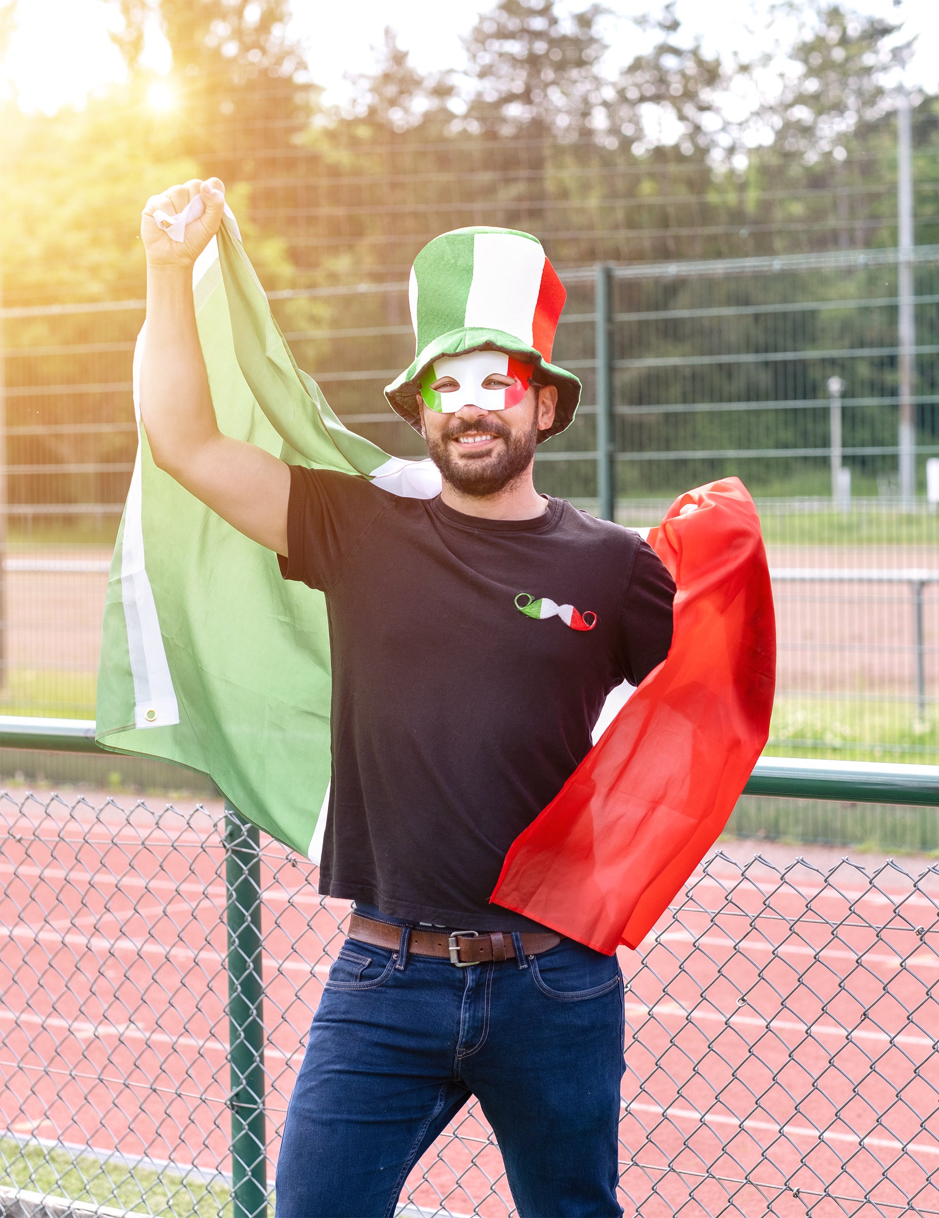 Ta velika zastava Italije meri 90 cm x 150cm. Zlahka se bo pritrdila s povezavo. Ta zastava je bistvena dodatna oprema, da svoje barve označite na stojalu ali okrasite sobo.