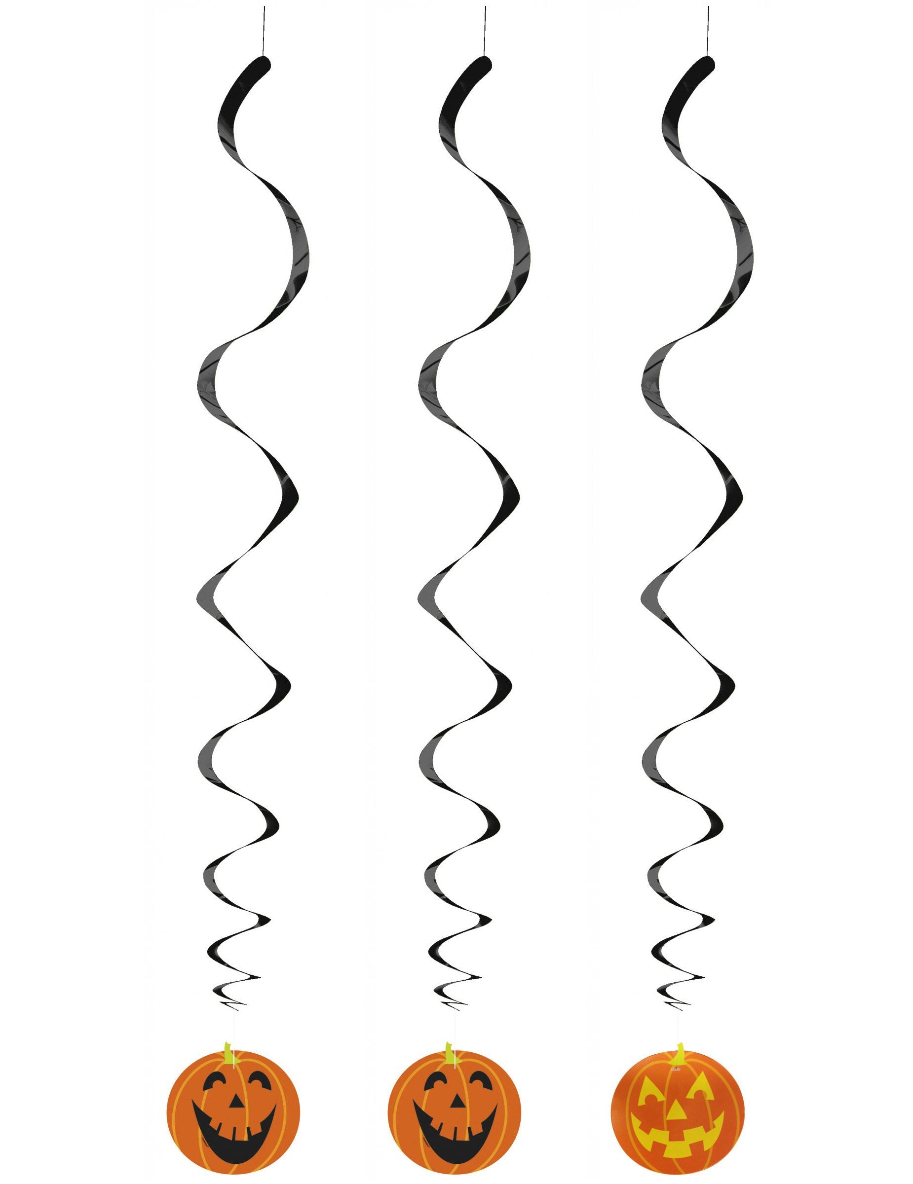 Vsaka viseča dekoracija je sestavljena iz črnega spiralnega traku, ki se konča z nasmejano bučo, za preprosto in učinkovito postavitev. Ko so obešene višje, se nežno vrtijo in ustvarjajo dinamičen ter prazničen učinek, popoln za uspešno Noč čarovnic.