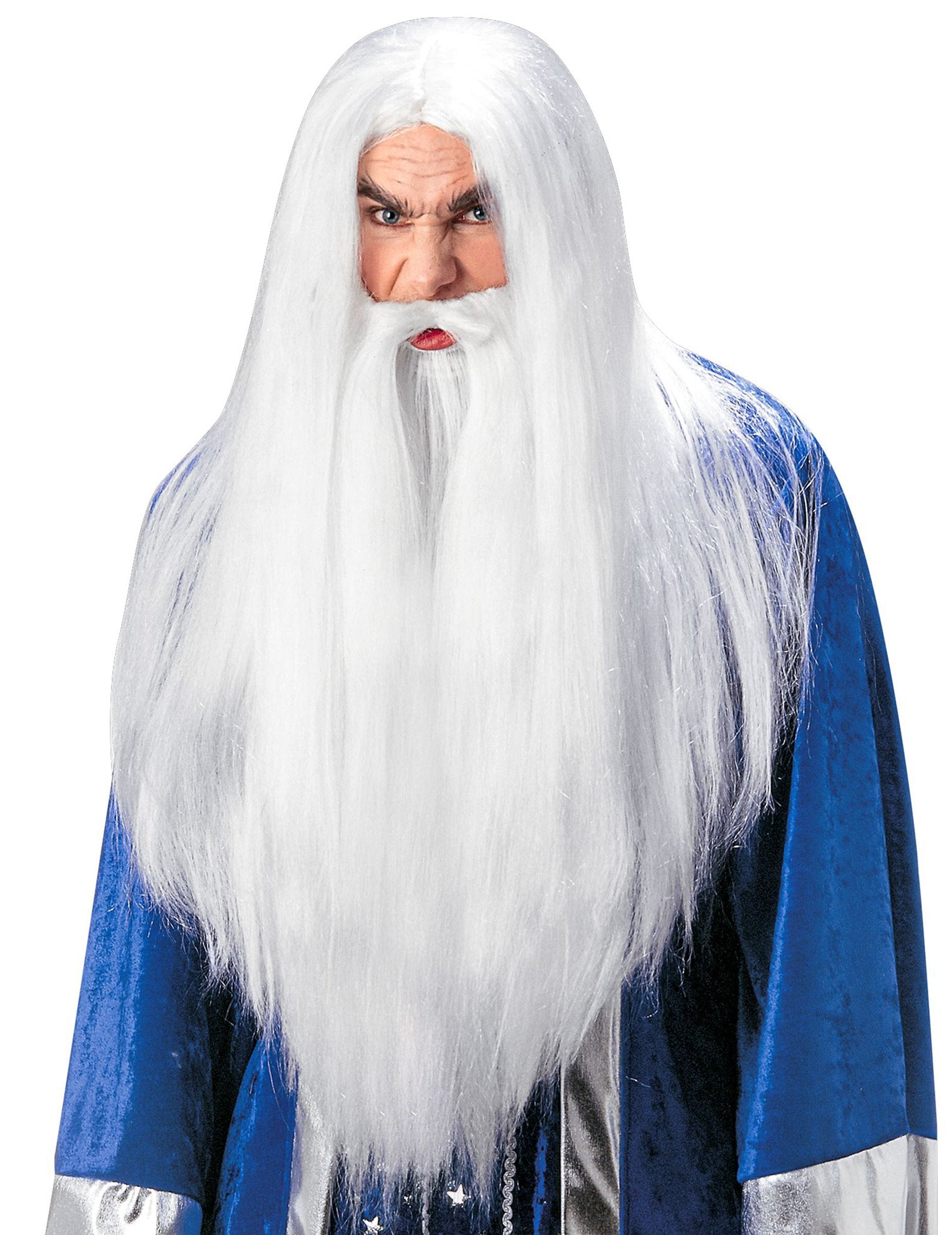 Ta lasulja za odrasle čarovnike ima zelo dolge bele sintetične lase. Spremlja ga ogromna bela brada, ki bo padla na oprsje in brke. Lasuljo meri 70 cm, brada pa je dolga približno 55 cm. Ta komplet bo kot nalašč za tekmovanje čarovnika ali čarovnika kostuma med kostumskim večerom s prijatelji ali za Halloween Copyright Widmann SRL. Avtorske pravice Widmann Srl