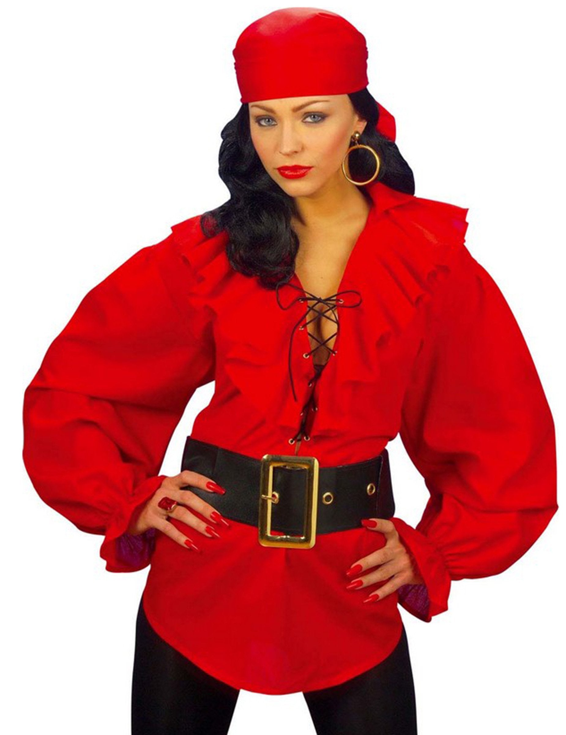 Ta piratska majica je namenjena ženskam (bandana, uhani, pas in hlače niso vključeni). Ta lep vrh je rdeč. Ta majica Corsair je idealna za dokončanje preobleke med pustnim ali tematskim večerom. Avtorske pravice Widmann Srl