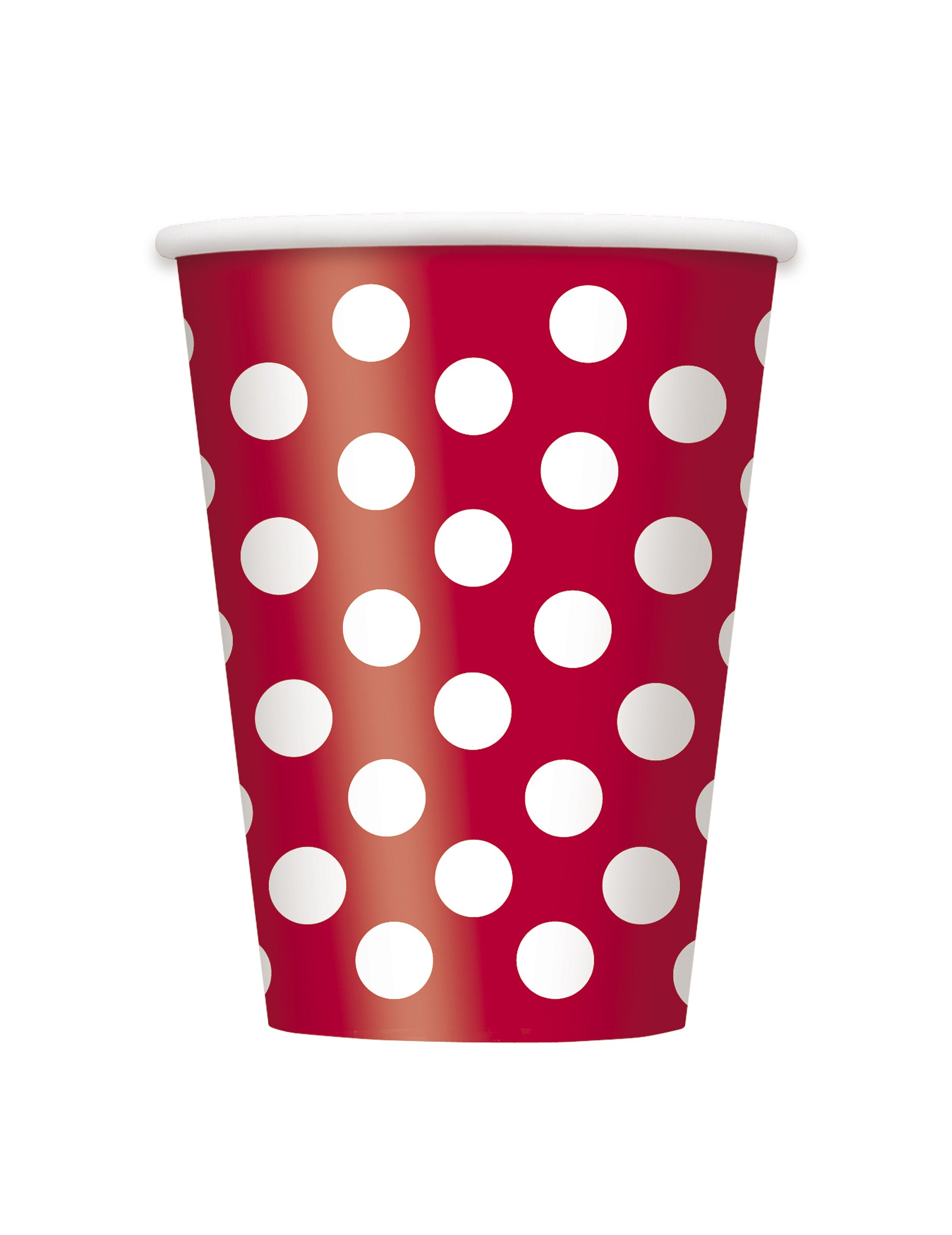 Ta paket vsebuje 6 rdečih skodelic. Imajo beli grah in lahko vsebujejo do 354 ml pijače. Ta serija bo idealna za večer med prijateljem. Dodajte skodelice dekoraciji mize za brunch ali rojstni dan.