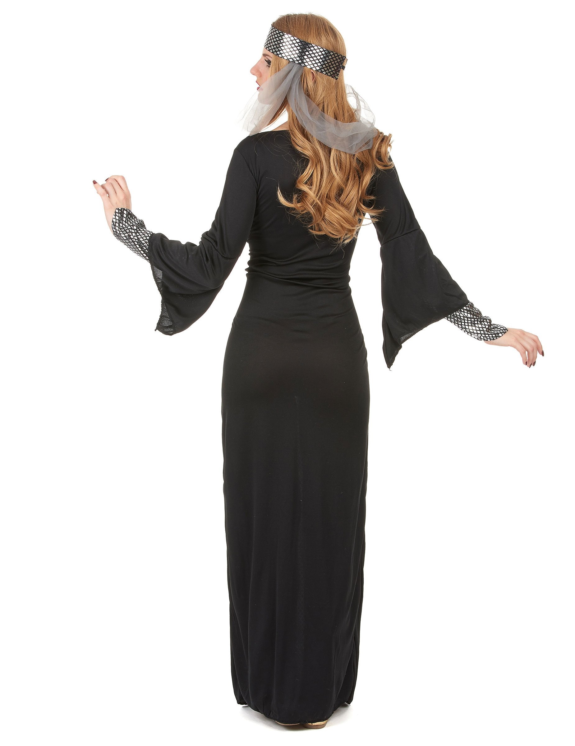 Obleka iz poliestera je črna. Rahlo je oprijeta v pasu in ima široke rokave. Srebrni poudarki na pasu, ovratniku in rokavih spominjajo na verižni oklep tistega časa.
