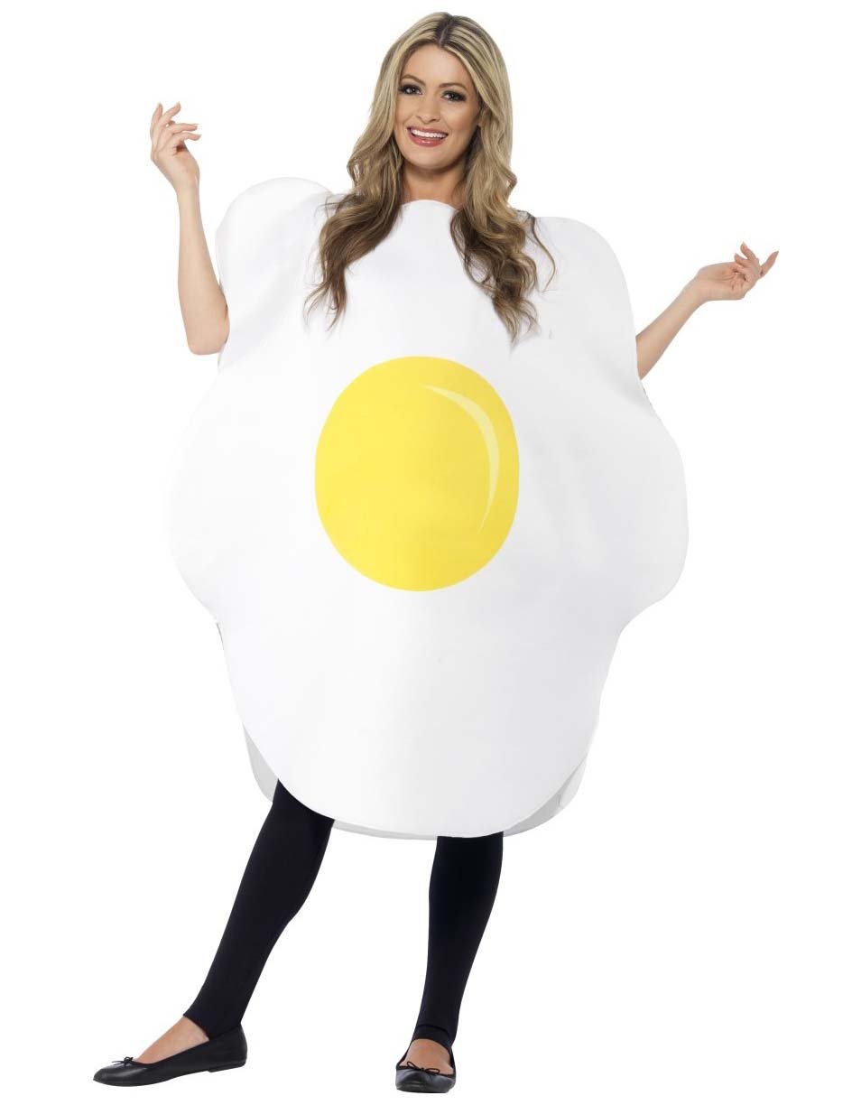 Ta jajčni kostum na odrasli jedi je sestavljen iz kombinacije (hlače in čevlji niso vključeni). Kombinacija lahke pene predstavlja jajce na posodi, z rumeno na sredini. Ta kostum bo enostavno oblečen, kot majica. Ima odprtine za roke in glavo. Ta kostum bo kot nalašč za opažanje med naslednjim večerom.