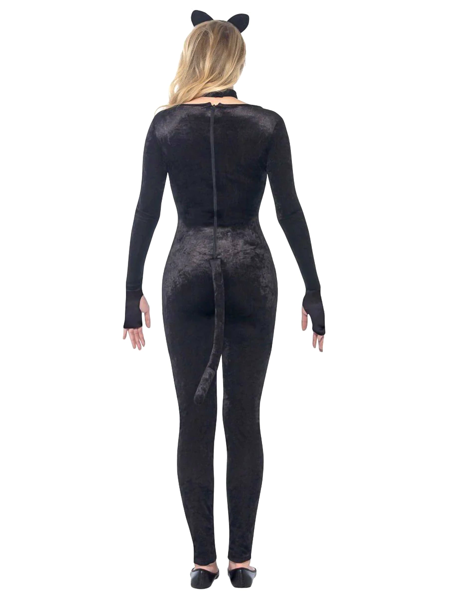 Ta kostum za najstniške mačke je sestavljen iz kombinacije, repa, glavnega rastlinjaka in vratu (ni vključenih čevljev). Črna kombinacija žametne nesmrtne se zapira zahvaljujoč zadrgi zadaj. Nosi se v bližini telesa. Rep meri približno 40 cm in je pritrjen s praskom. Glavni rastlinjak ima majhna ušesa. Vrat se ujema z kombinacijo in se zapre s praskom. Preoblikujte se v mačko s tem kostumom.