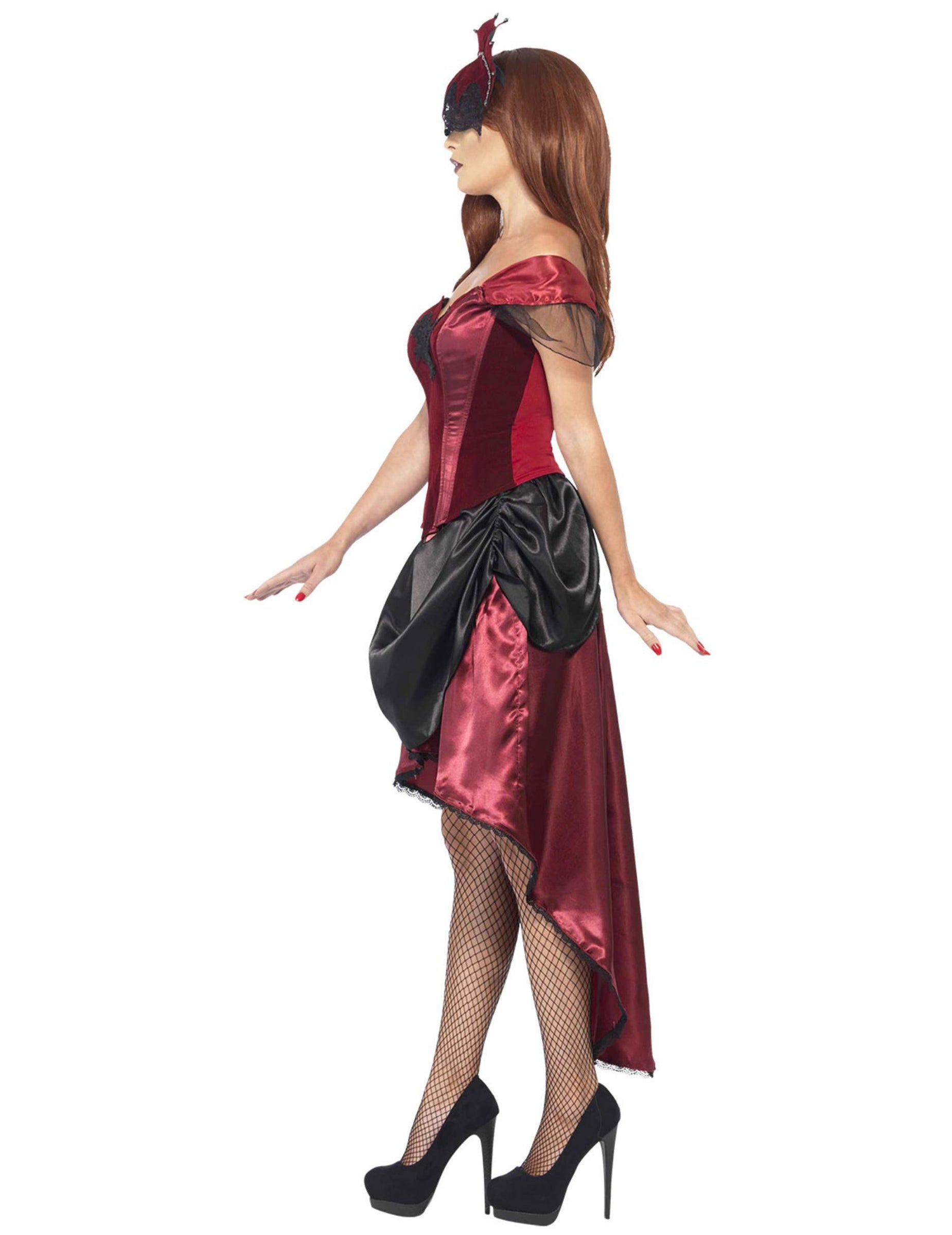 Ta beneški zapeljivkin kostum za ženske je sestavljen iz korzeta, krila in naglavnega okraska (nogavice in čevlji niso priloženi). Korset je zelo eleganten, v bordo rdeči barvi s satenastimi trakovi. Spredaj ga utrjujejo trde opore, ki držijo korzet na mestu. Na hrbtni strani je korzet iz elastične rdeče tkanine.