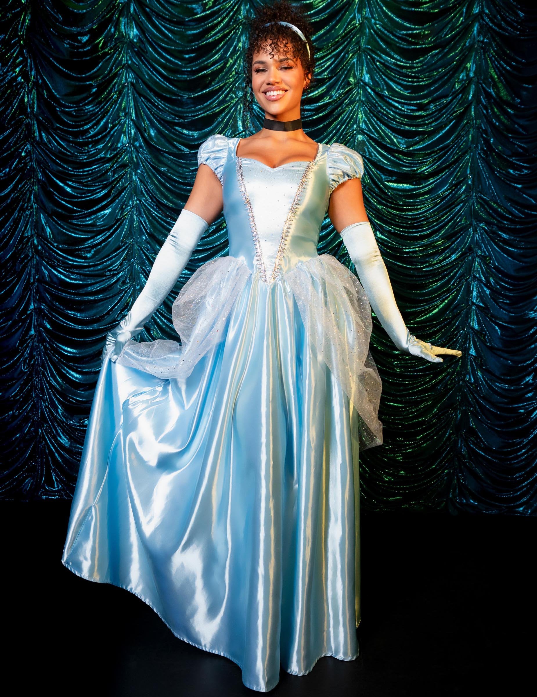 Ta kostum princese je namenjen ženskam. Sestavljen je iz dolge svetlo modre kroglične obleke, sestavljene iz satena in bleščečega tila. To obleko spremlja tudi ustrezen svetlo modri trak za glavo z obleko in črno sateno ogrlico. Bodite najlepši ples, vendar bodite pozorni na dvanajst udarcev polnoči.