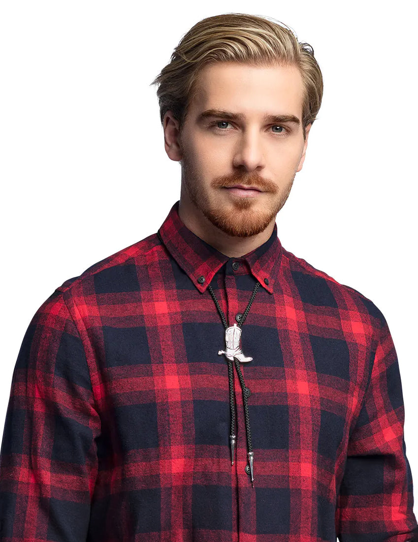 Ta prikrita dodatna oprema je ogrlica za odrasle. Sestavljen je iz črne vrvi, ki se je končala z dvema srebrnima točkama. Priloga v obliki kavboja vam omogoča, da to bolj ali manj tesno kravato zavežete. Ta Bolo, priljubljen dodatek v petdesetih letih prejšnjega stoletja, bo med preoblečenim večerom na temo zahodnjaka prinesla končni pridih vašemu kavbojskemu ali kavarniškem kostumu.