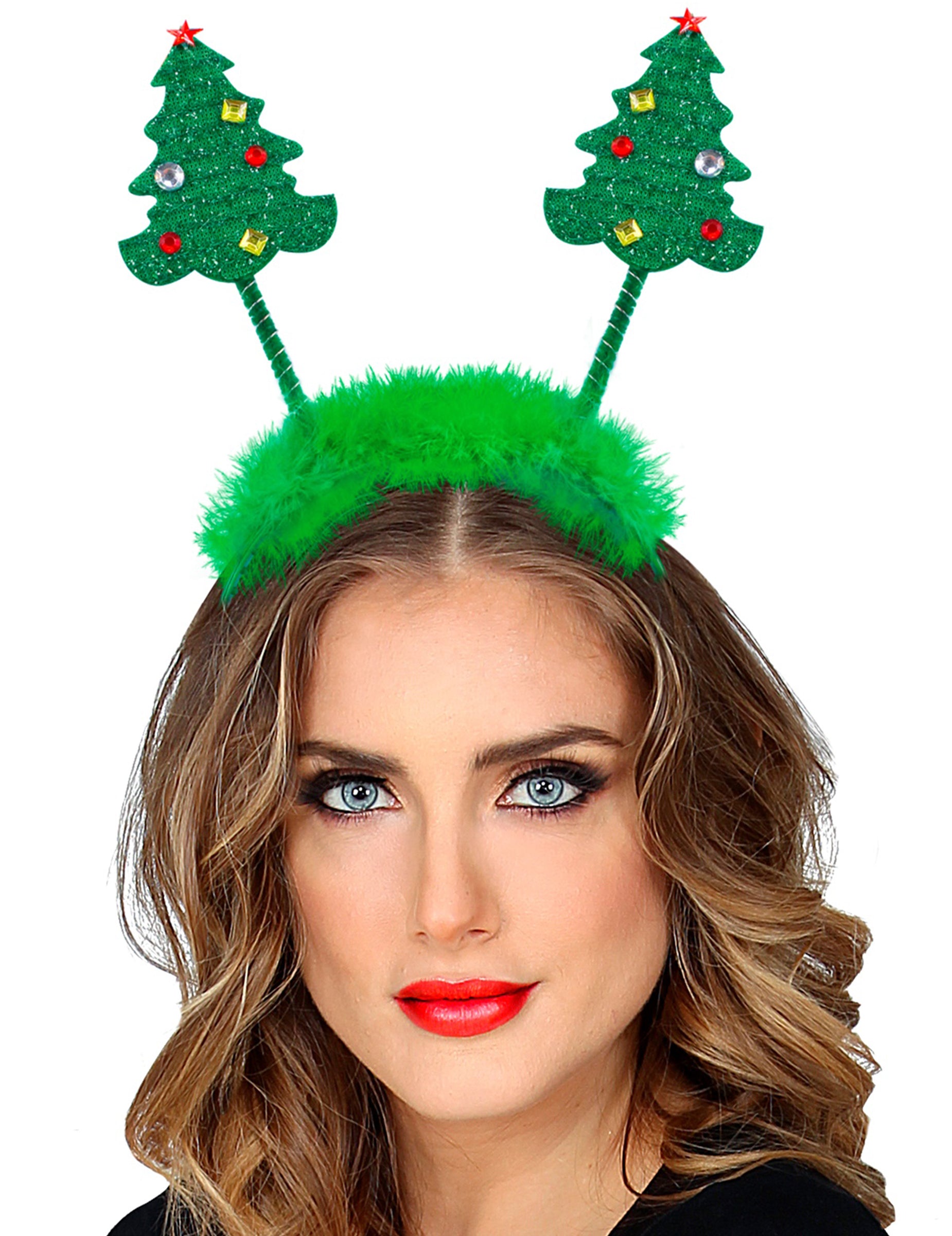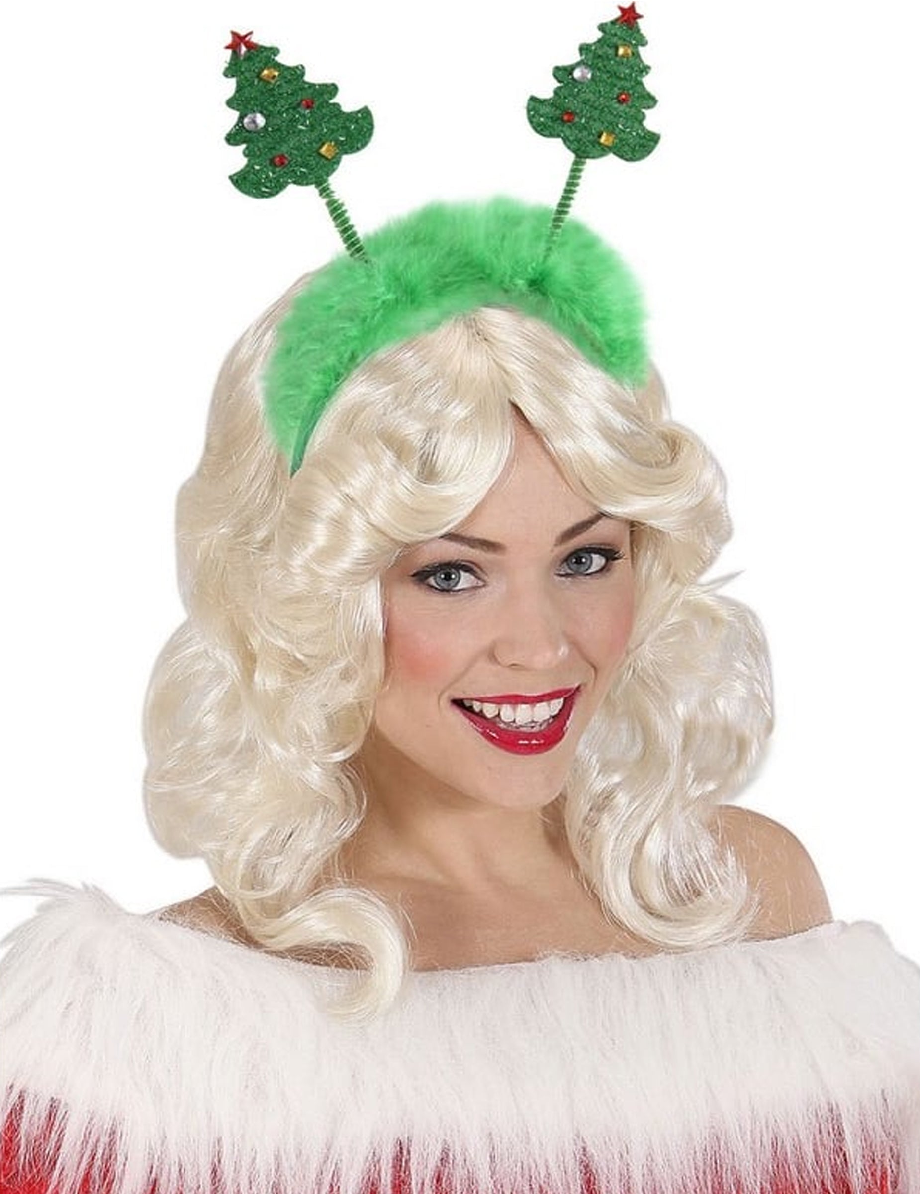 Ta rastlinjak z zeleno glavo je sestavljen iz dveh božičnih dreves, ki merita približno 12 cm višine. So pritrjeni na vzmeti. Têt rastlinjak je okrašen z zelenim krznom na vrhu. Kot nalašč bo za dokončanje vaše šaljive preobleke za praznični čas. Avtorske pravice Widmann Srl