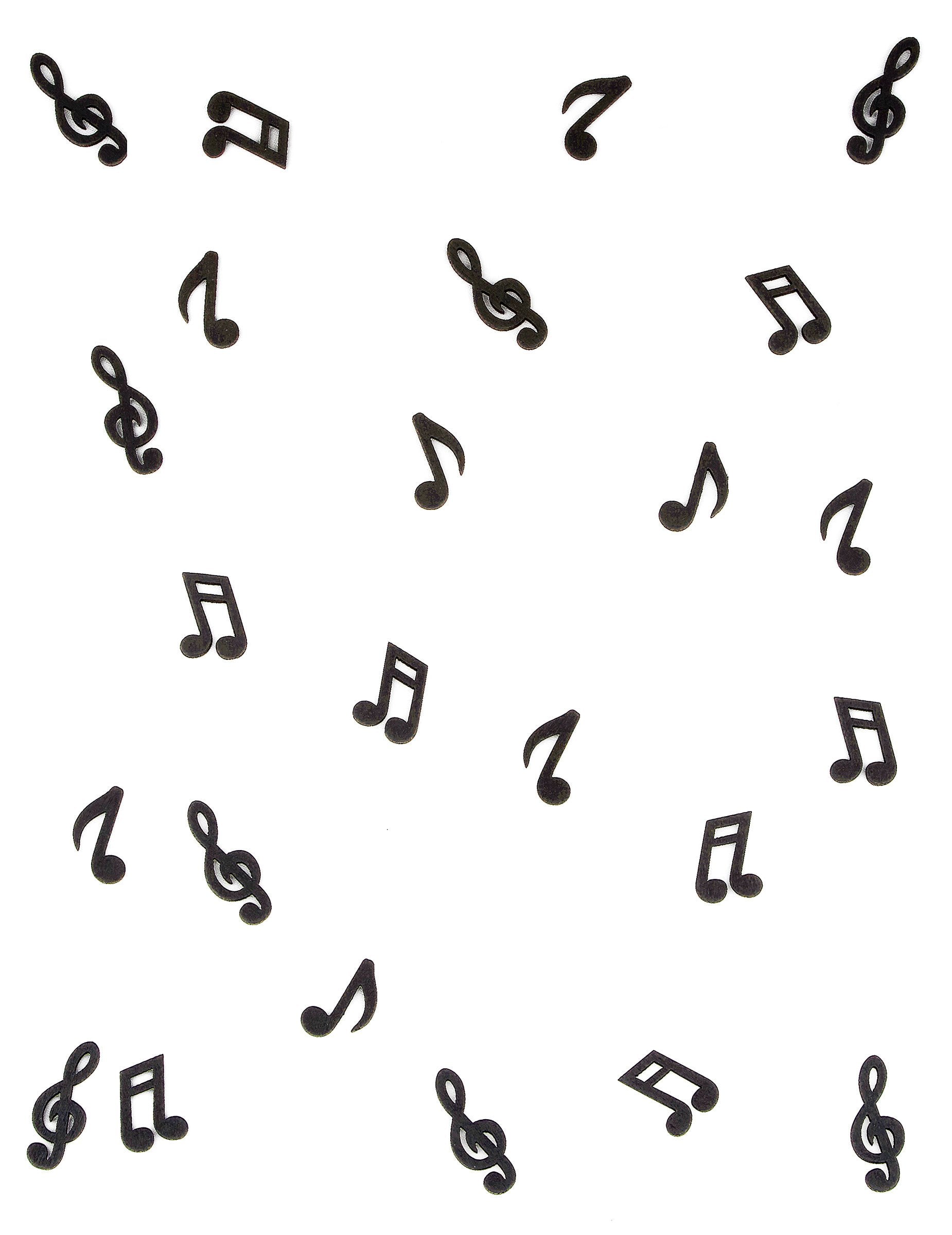 24 črnih lesenih glasbenih not kot konfeti za mizo