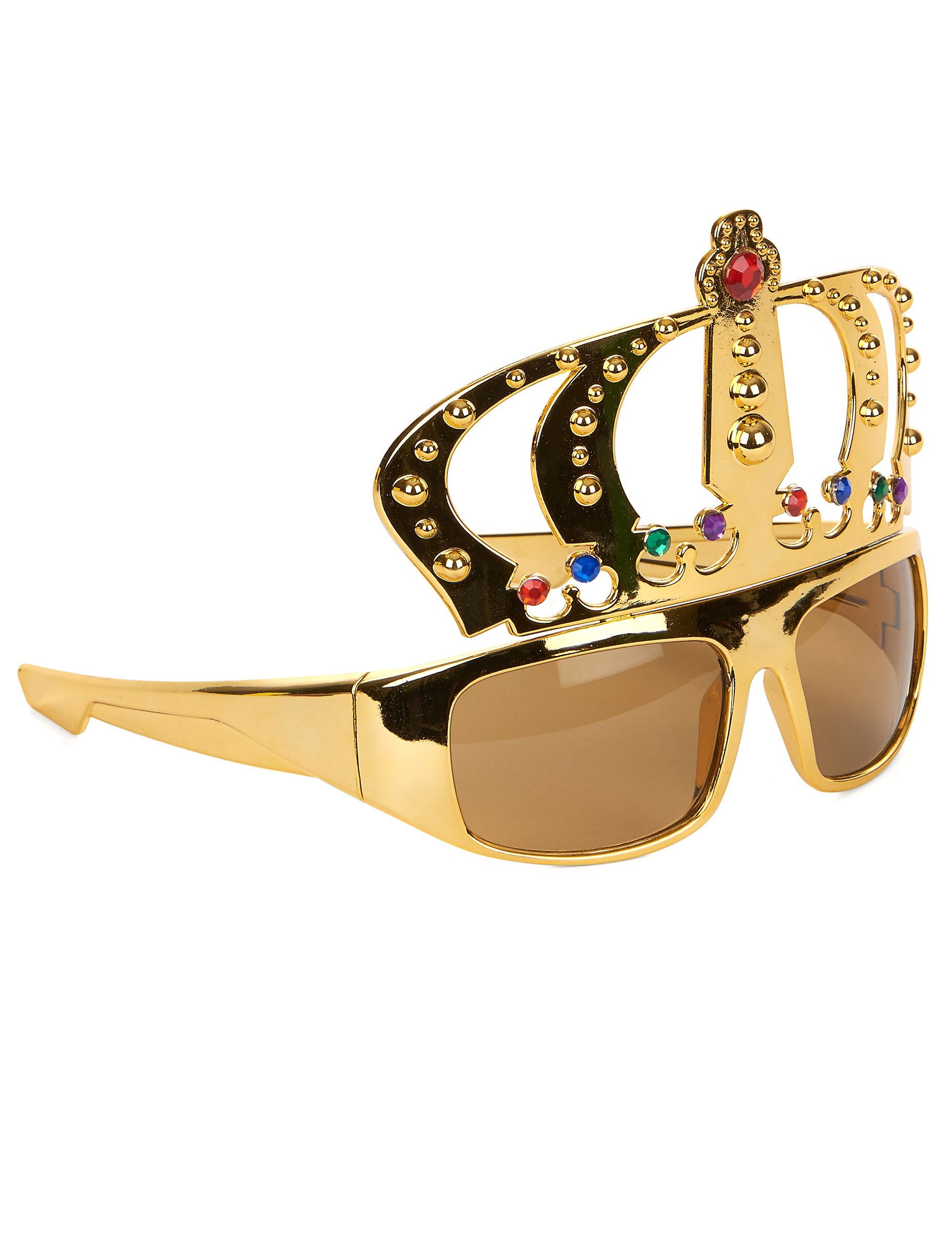 Ta očala s krono so zlata. Krona je obešena neposredno na očala. Na kroni so vzorci in lažni kamni več barv. Očala so 18 x 13 cm (s krono), veje pa 12,5 cm. Zasijte zvečer s temi kraljevimi očali.