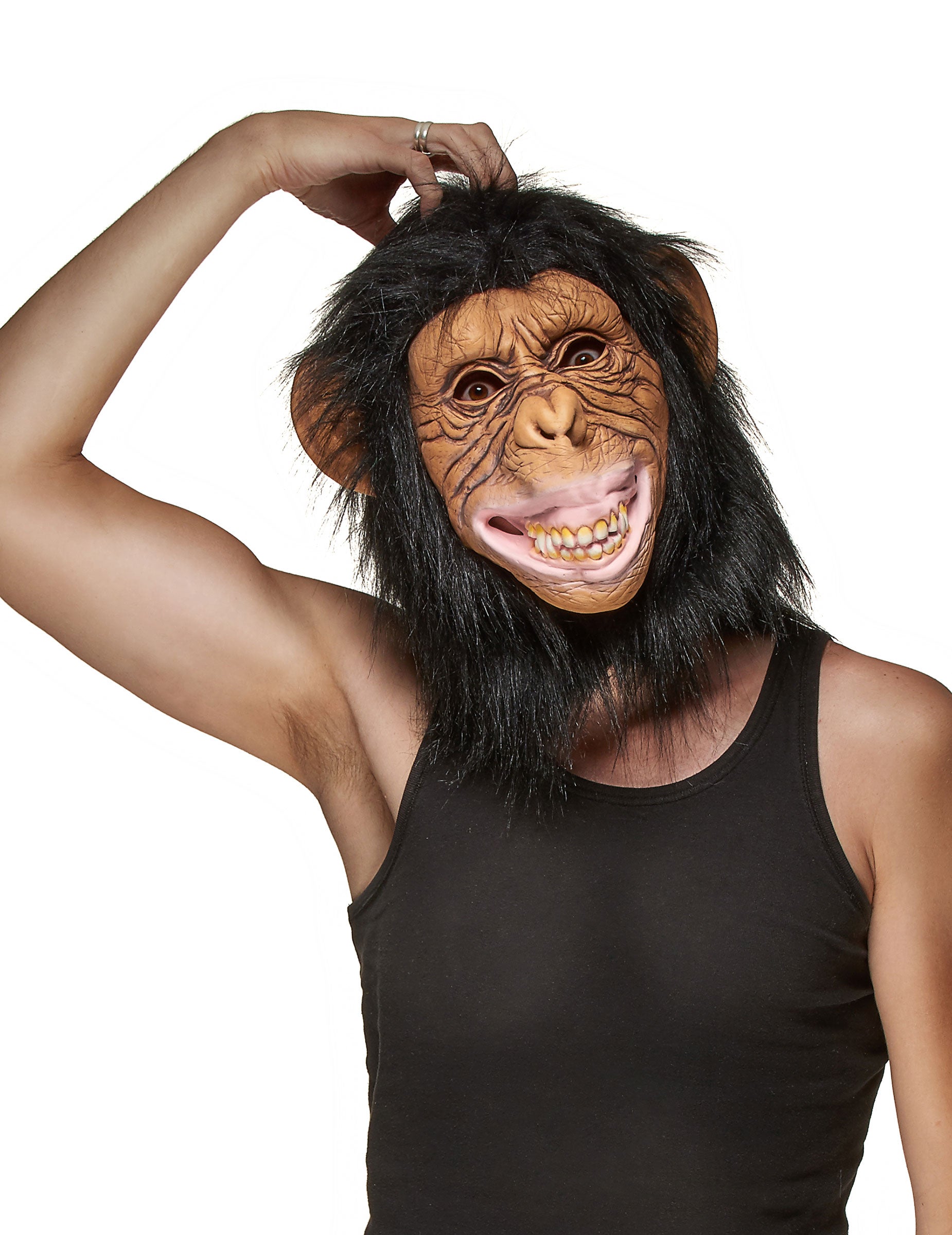 Ta maska ​​za odrasle opice je v prožnem lateksu in obdana s črnim fauxnim krznom. Maska je prebodena za vaše udobje v ustih, nosu in očh. Podrobnosti so zelo čedne, kar resnično daje realen učinek tej dodatki. To je polna maska, ki jo je treba obleči kot kapuco. Če želite dokončati kostum med kostumskimi večeri, ta preobleka ne bo pritegnila videza.