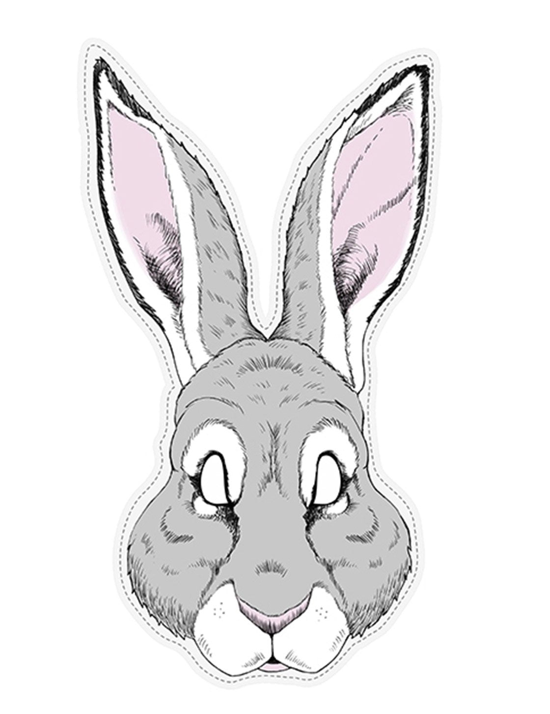 Je sive barve z roza poudarki na ušesih. Maska meri približno 40 cm v dolžino in 20 cm v širino. Pri očeh so odprtine, zadaj pa je elastika, ki omogoča, da masko pritrdite na obraz.