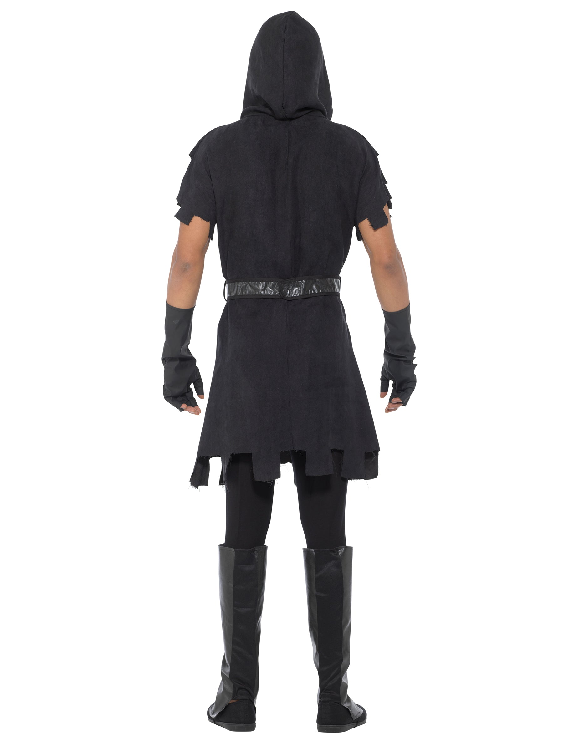 Tega izvršilca za moške sestavlja tunika, pas, par palčnikov in prekomerne kabine. Črni učinek črni tuniko ima kratke rokave in kapuco. Na vrhu hrbta se zapre s praskom. Dokonča ga pas, ki se zapre v hrbet tudi s praskom. Dolgi mintaini so črni. Odprti so na roke. Sur-zareze so črne. Učni učinek spredaj, na zadnji strani so v črni tkanini. Elastike se držijo pod nogami. Ta kostum bo kot nalašč za strahovanje vaših prijateljev na noč čarovnic.