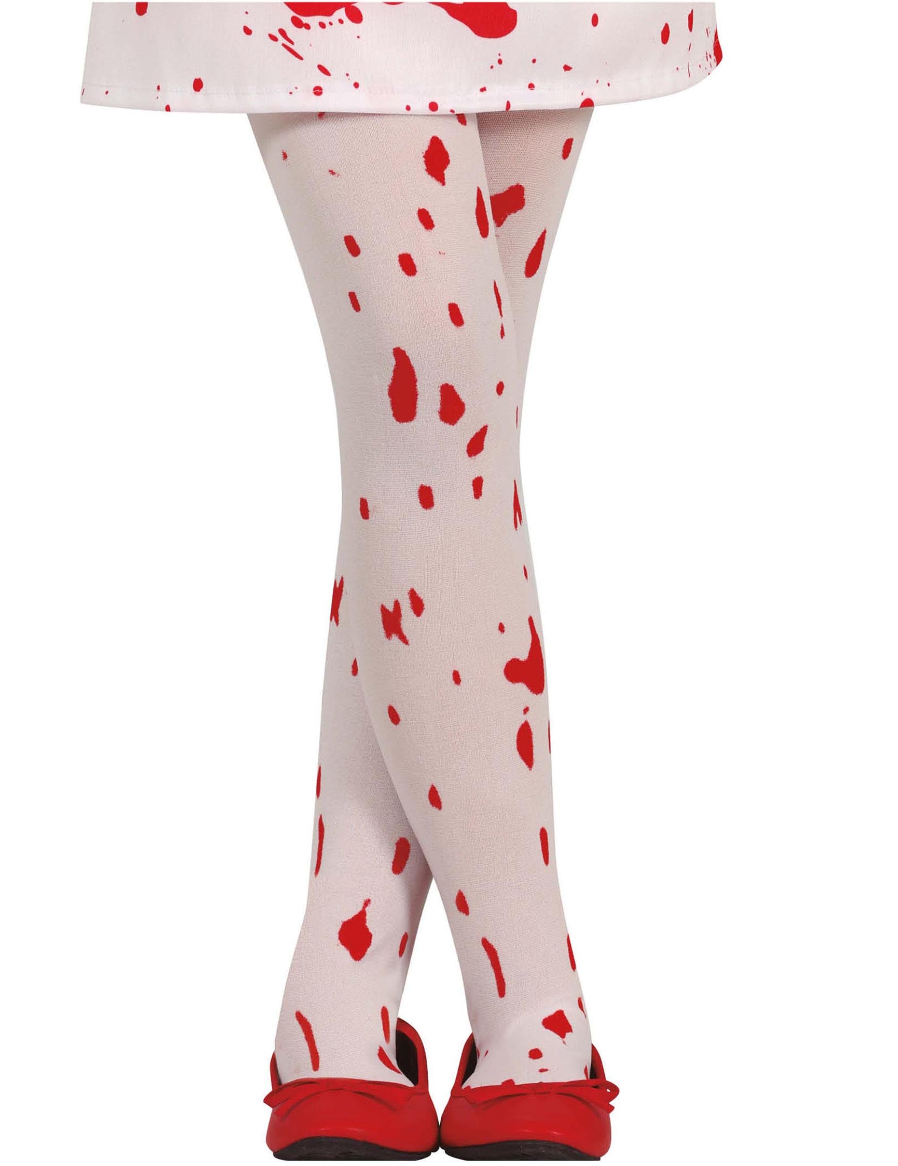 Te elastične hlačne nogavice so bele barve s pikami umetna kri po celotni dolžini.