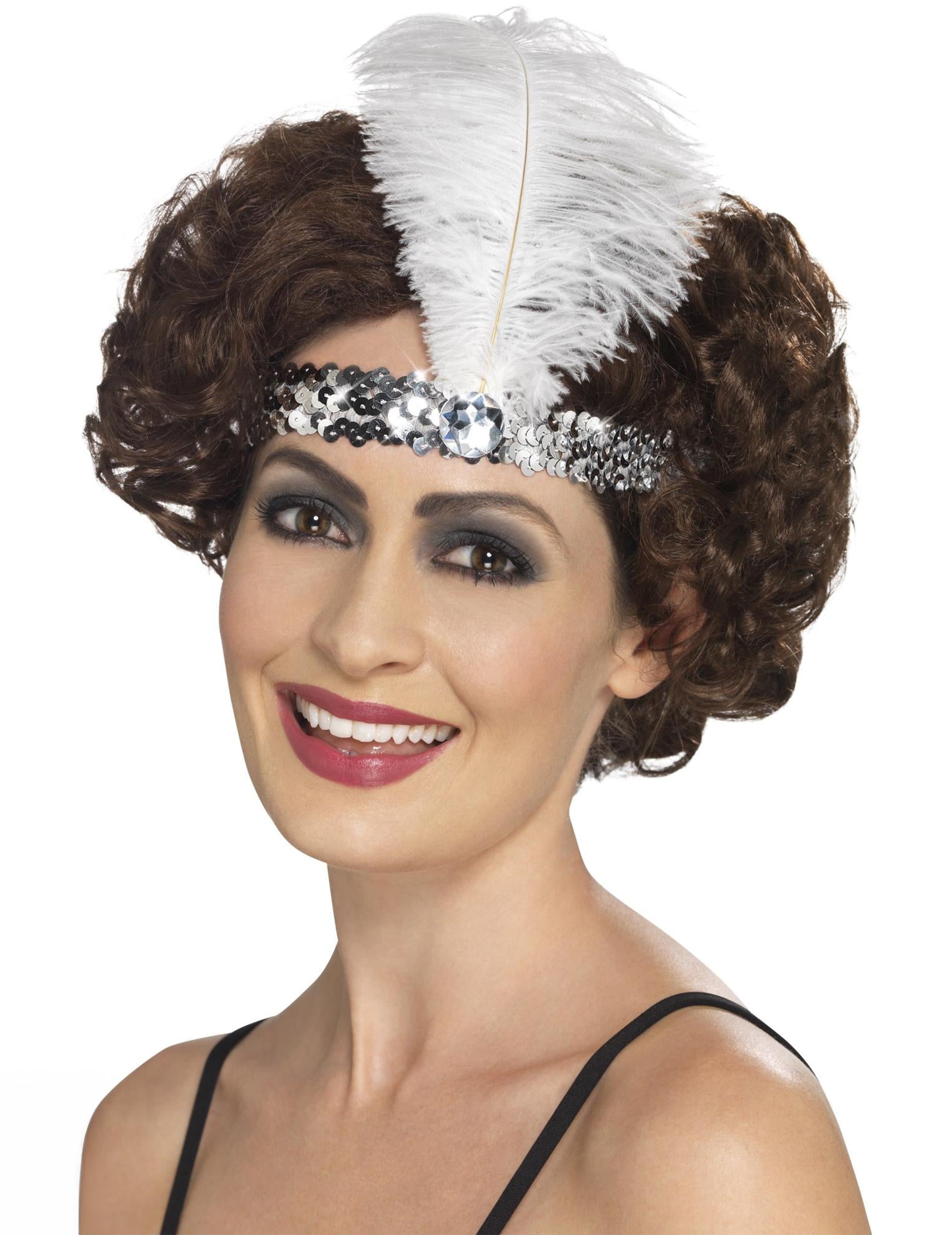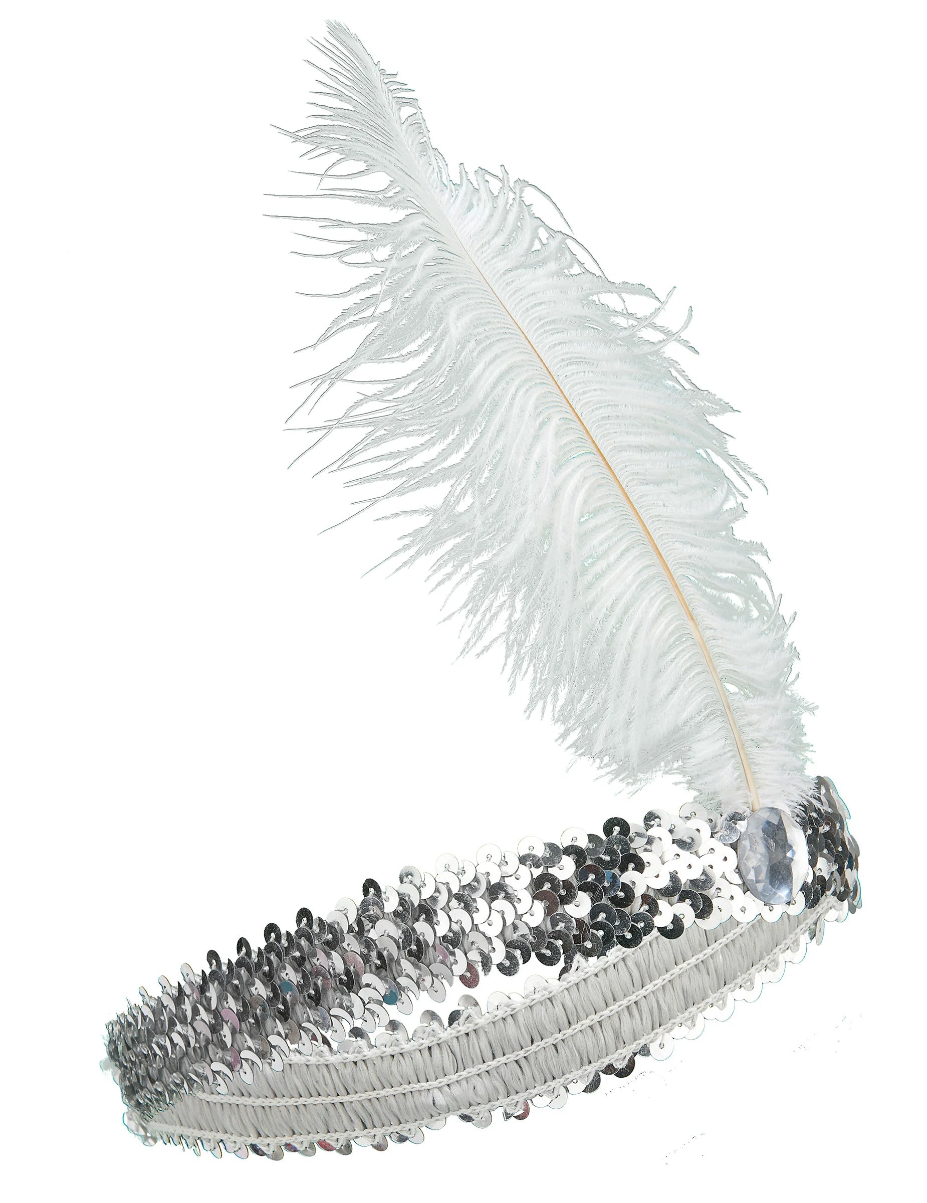 Ta srebrni trak za glavo v Charlestonu je sijajen s peresom in sivim draguljem. Prekrit je s pajkicami. Njegova elastična tkanina bo prilagodila vse glave. Ta dodatna oprema bo popoln dragulj, ki bo obleko dokončal zvečer na temo 20/30 -ih!