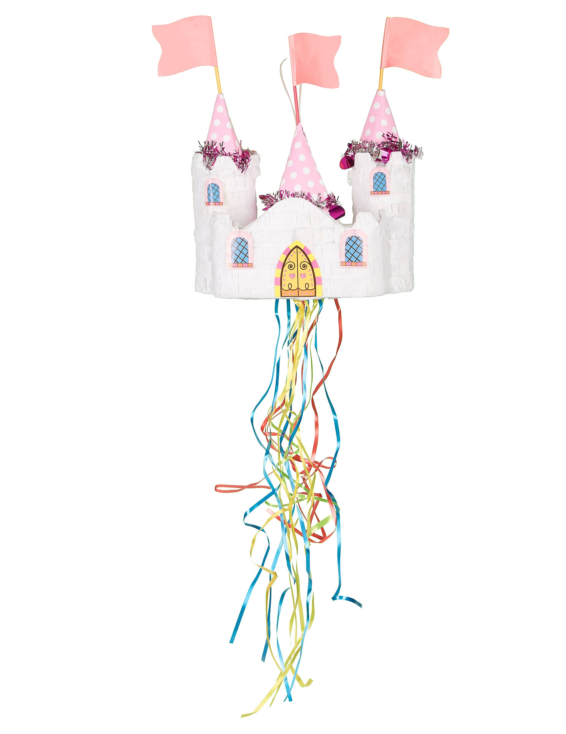 Ta mala kartonska piñata predstavlja grad princese. Je bela in rožnata barva in meri približno 30 x 30 cm. Ta piñata ima plastično zanko, da jo zlahka obesi, pa tudi majhno luknjo, da jo napolnite s presenečenji, majhnimi igračami in priboljški. Ta piñata ima tudi približno dvajset barvnih trakov spodaj, le eden od njih bo odprl past. Ko je vaša pinata napolnjena z darili in suspendirana, je cilj igre posneti po eno vrvico, poiskati tisto, ki bo odprla pinato in sprostila njegovo vsebino. Ta Pinata Château de Princess bo kot nalašč za ustvarjanje vrhunske animacije za rojstni dan vaše male princese!