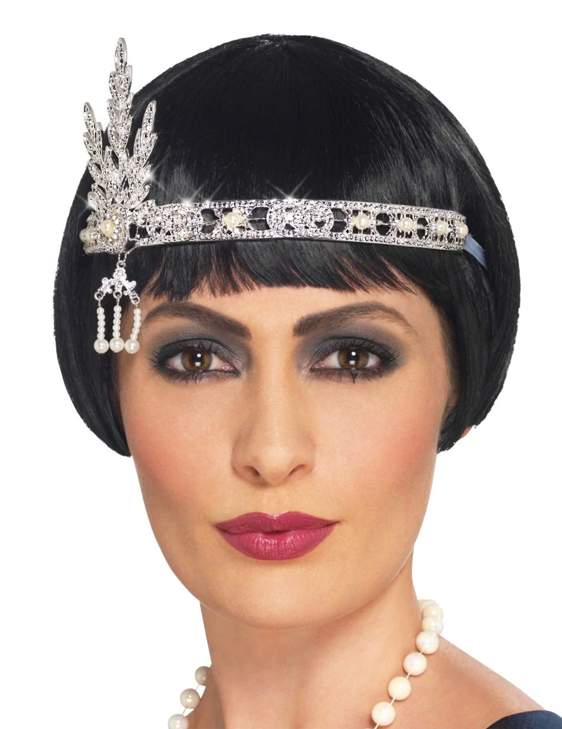 Ta transparent Charleston za ženske je izdelan iz srebrne kovine. Okrašena je z majhnimi bisernimi plastičnimi biseri. Na strani predstavlja 3 veje. Ta transparent se nosi z dvema povezavama, da vozla okoli glave. Ta transparent bo kot nalašč za dokončanje retro preobleke ob večeru na temo 20 -ih.