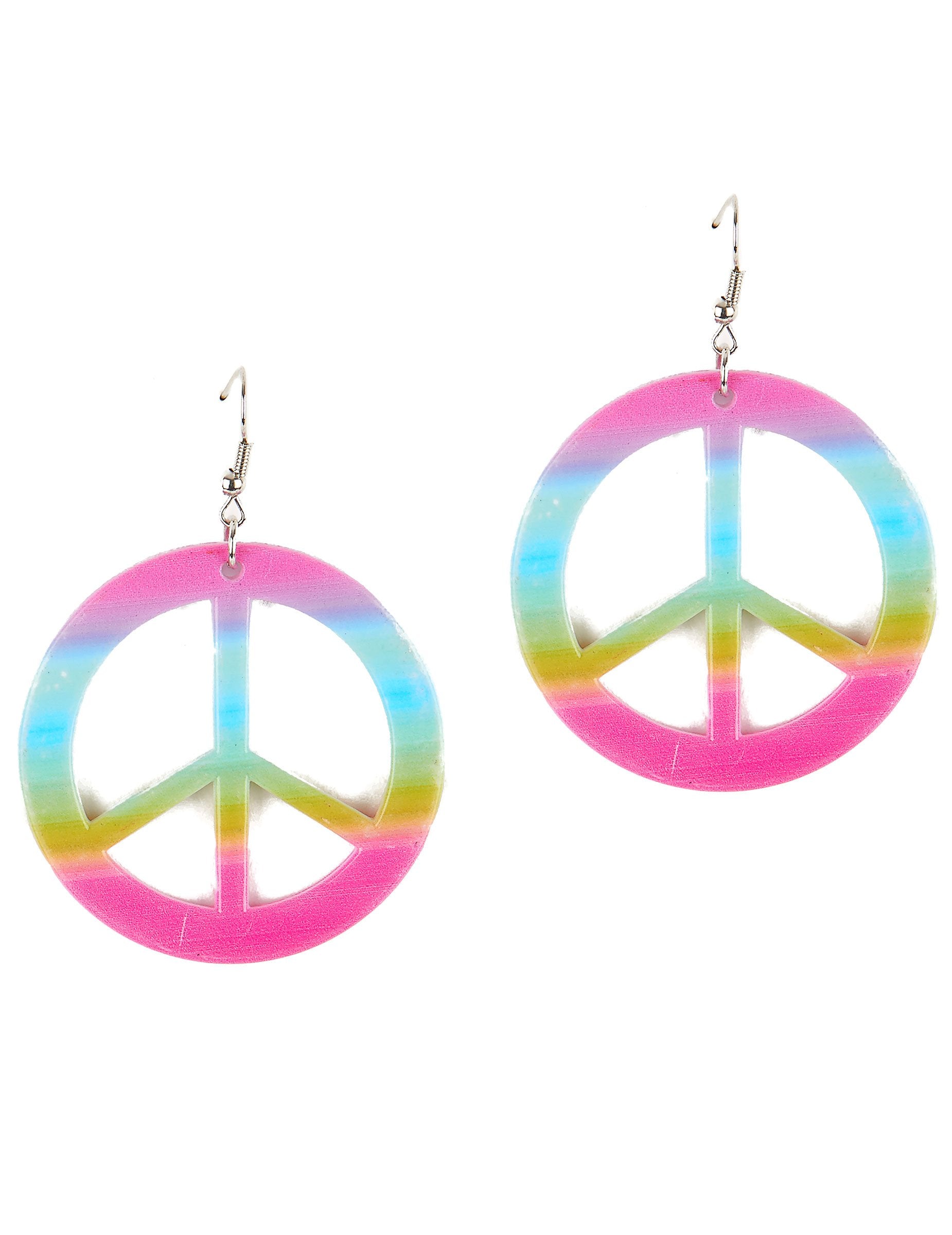 Ti uhani za odrasle so plastični. Predstavljajo več kot znani simbol "miru in ljubezni". Barva je sestavljena iz stopljenega večbarvnega učinka in kovinski kodri so pritrjeni na vrhu. Zato bo treba ušesa prebogati. To je dovolj, da simpatično dodate svoj hipi kostum za tematsko zabavo.