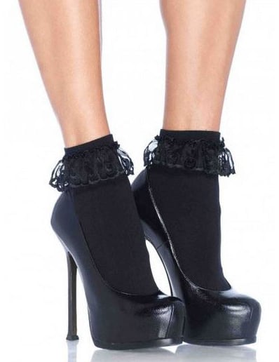 Te nogavice so za odrasle. Črna barva, v ravni dolžini so približno 20 cm. Na gležnju so sestavljene iz črne čipke. Ta par nogavic bo kot nalašč za dokončanje obleke za noč čarovnic med prikrito večerom.
