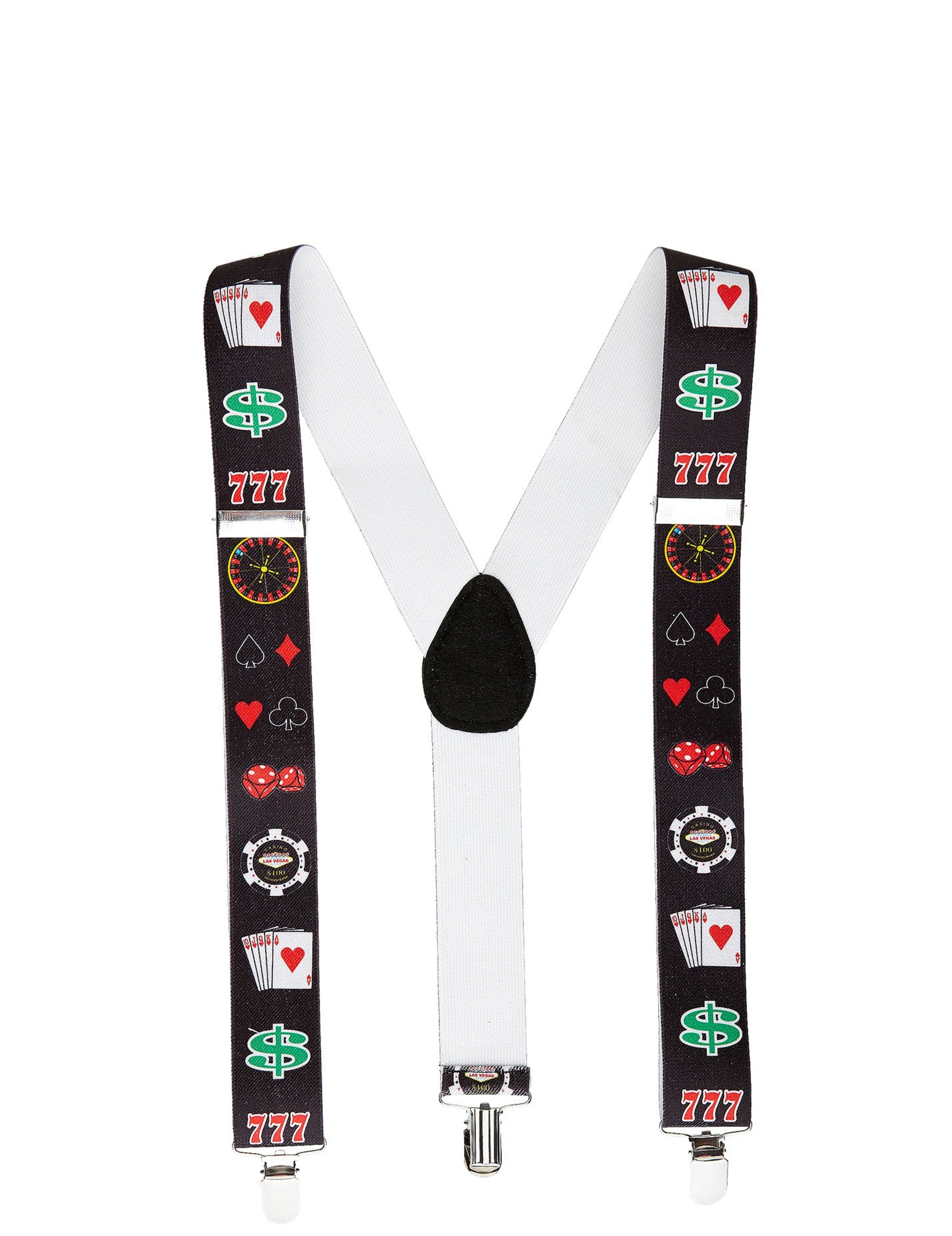 Ta par elastanskih trakov je namenjen odraslim. So črne barve in so natisnjeni z vzorci na temo pokra in igralnice. Ti nastavljivi trakovi so prekrižani zadaj in imajo sistem pritrdilnih prilog. Ta par obešalnikov bo bistveni dodatek za dokončanje vaše obleke, zvečer na temo Las Vegas, poker ali igralnico. Avtorske pravice Widmann Srl