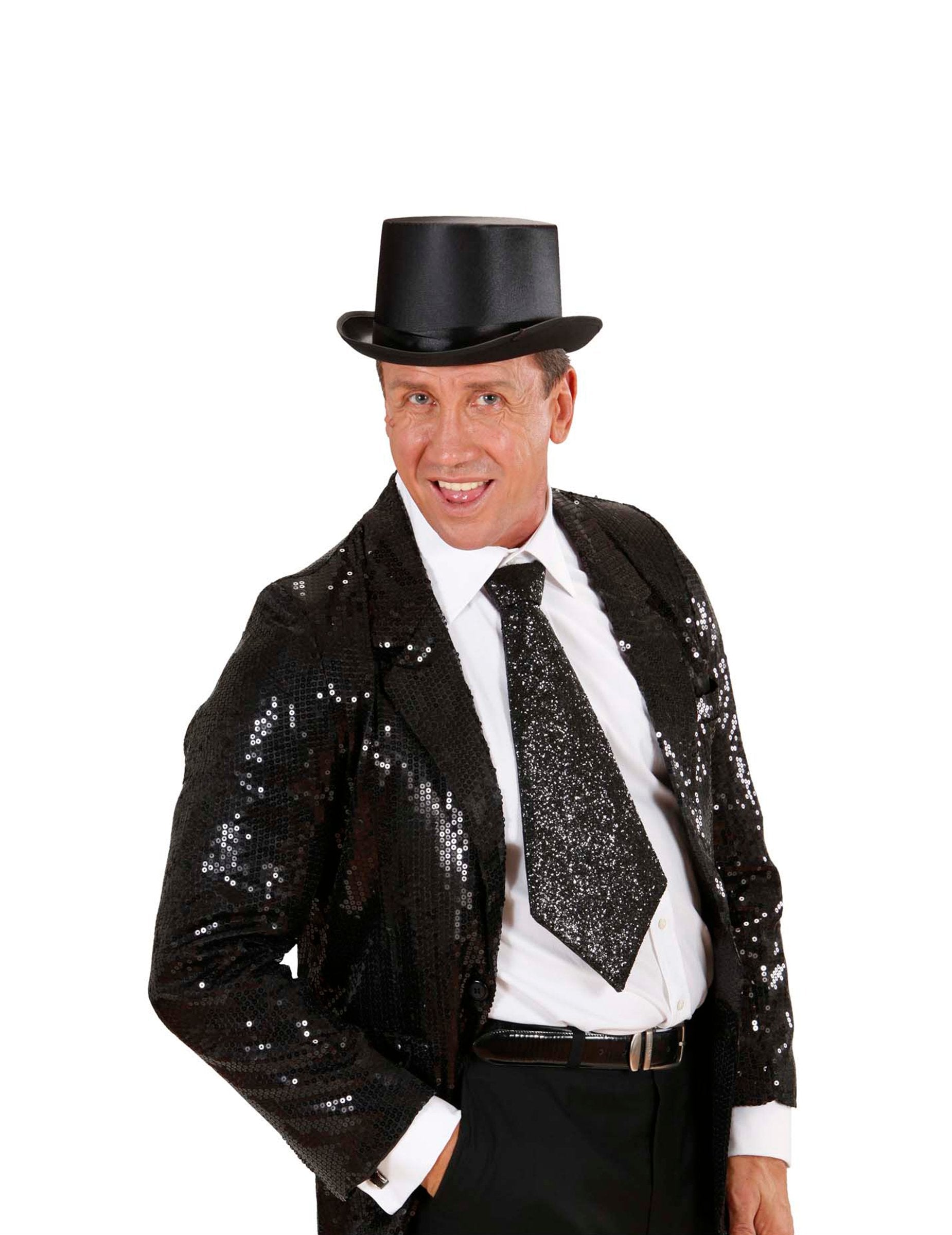 Ta črna kravata za odrasle je prekrita s črnimi bleščicami (ostaja ni vključena). Že je vozla in se vzdržuje s črno elastiko, da se prehaja okoli vratu. Meri približno 40 cm dolžine in na najširšem približno 15 cm. Ta zelo kakovostna kravata bo idealna dodatna oprema za dokončanje vaše obleke za novo leto ali za večer "Rhinestone + Paillettes"! Avtorske pravice Widmann Srl