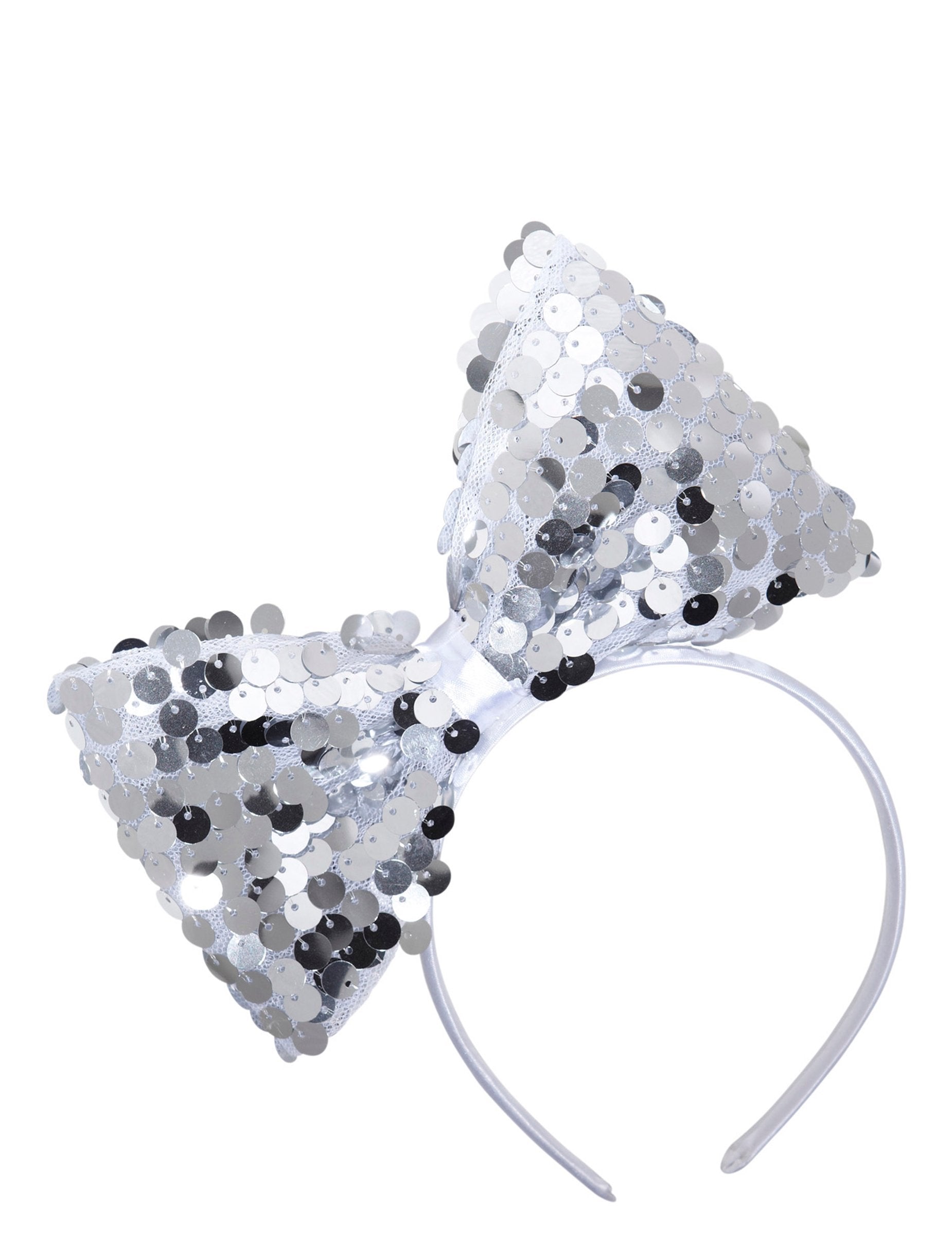 To naglavni trak za odrasle je prelito z veliko Srebrna pentlja z bleščicami.