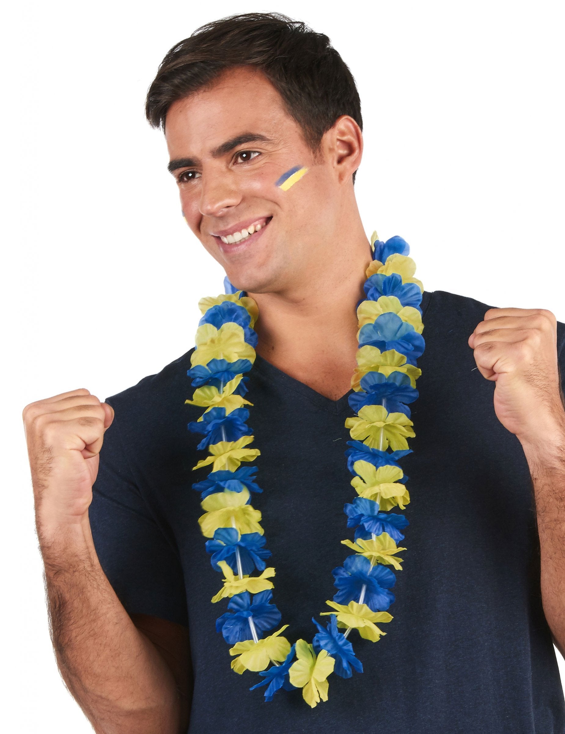 Ta ogrlica za odrasle na Havajih je v barvah Švedske. Sestavljen je iz rumenih in modrih tkaninskih cvetov, kot je švedska zastava. Podprite svojo najljubšo ekipo tako, da ob športnem dogodku nosite to ogrlico!