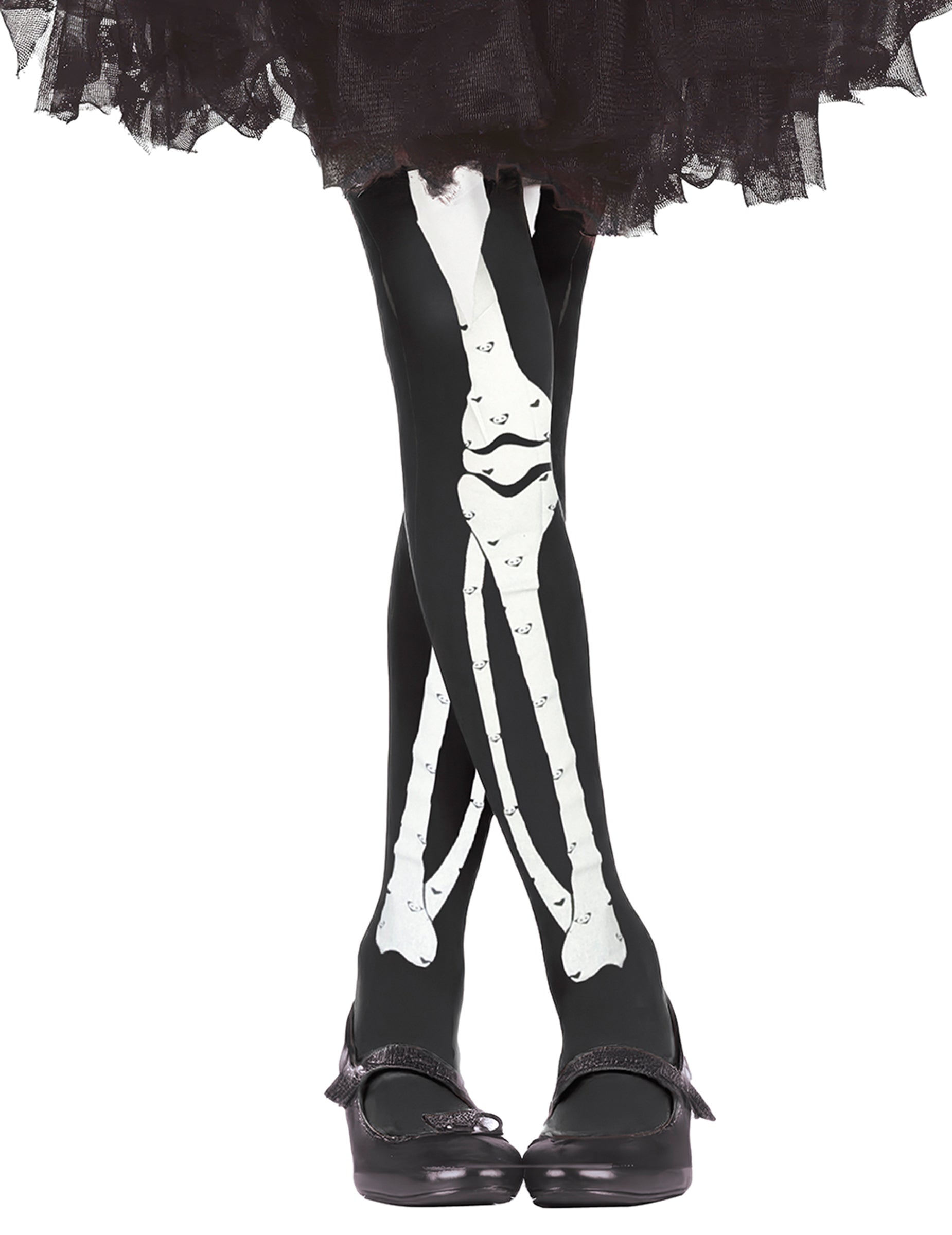 Te otroške nogavice so črne in imajo tisk, ki predstavlja okostje (Tutu ni vključen). Kot nalašč bodo za dokončanje otrokovega okostja kostuma za noč čarovnic!