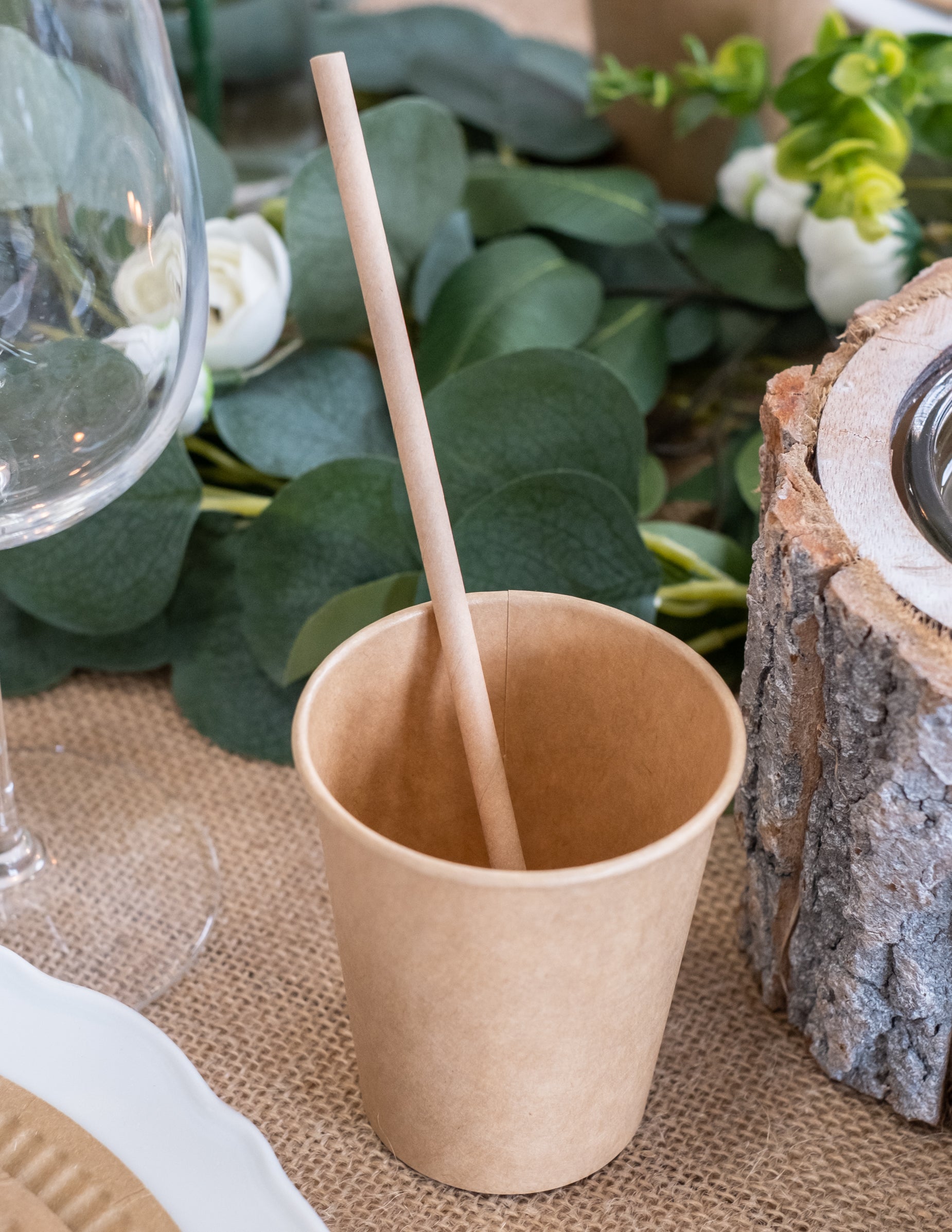 Ta parcela je sestavljena iz 20 kartonskih slamic. So kraft v barvi in merijo približno 19,5 cm dolžine. Te slamice bodo popolnoma dokončale naravno tematsko dekoracijo za poroko ali rojstni dan.