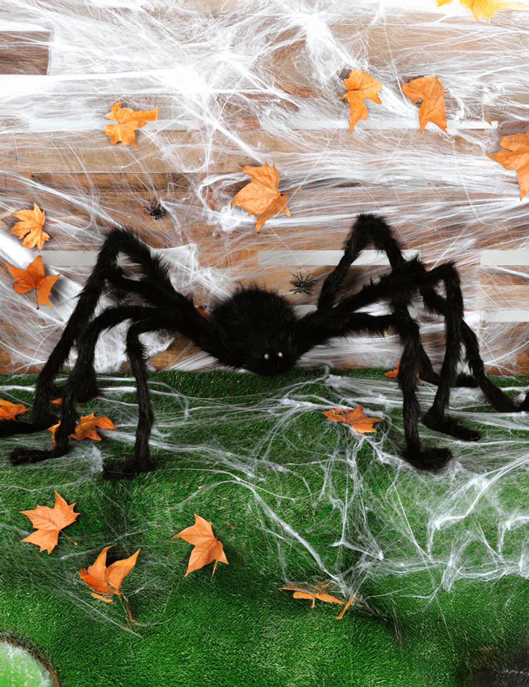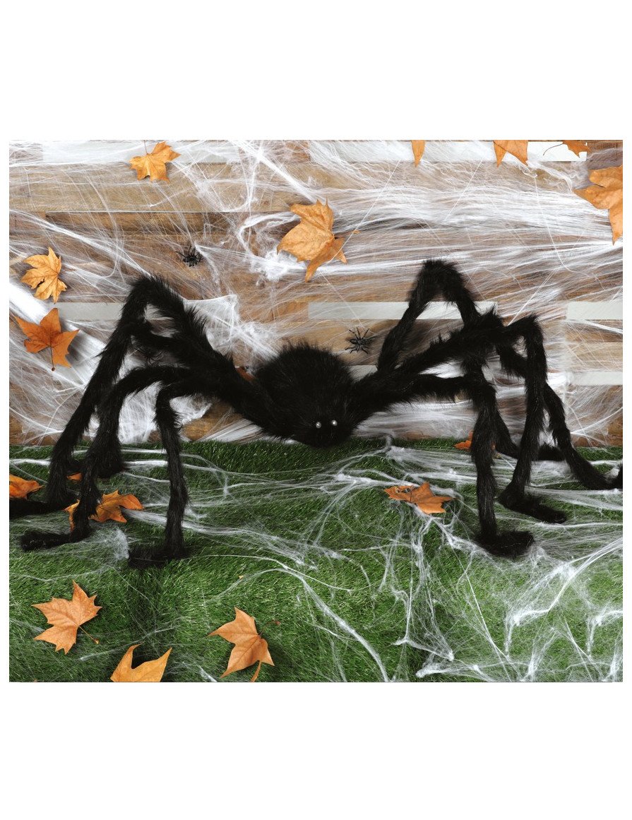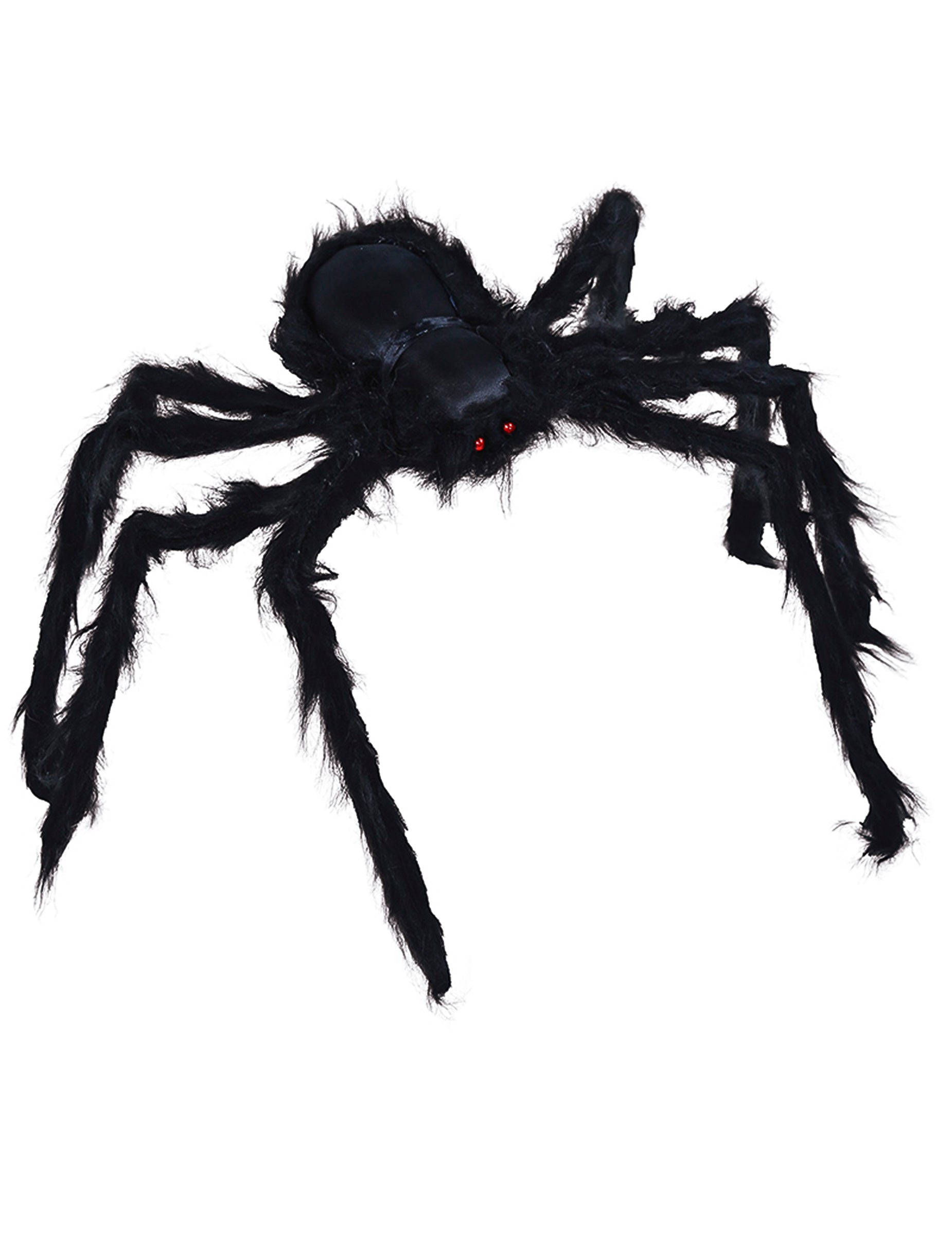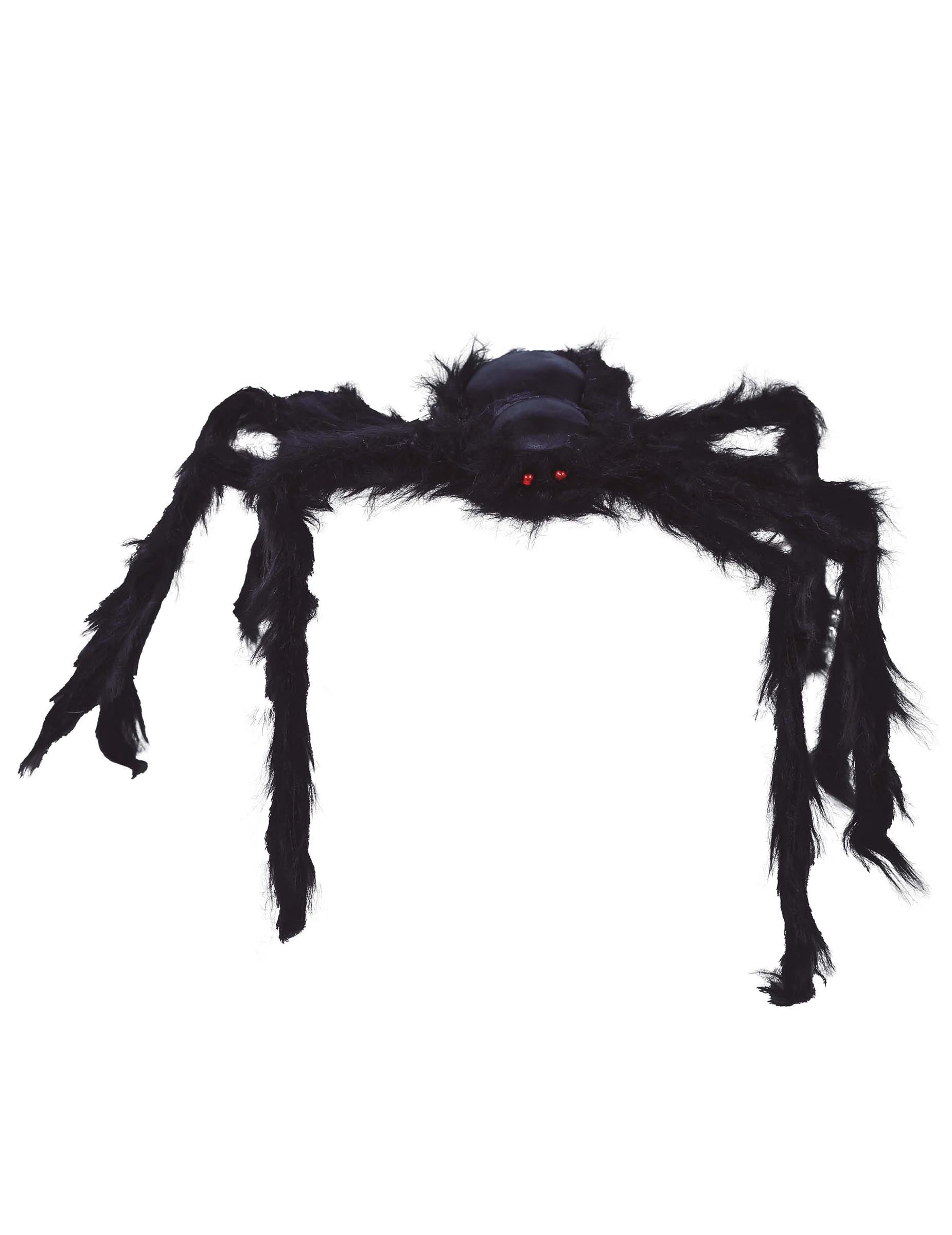 Ta dekoracija je velikanski pajek, ki meri 150 cm. Je povsem črna in pokrita z lažnimi dlačicami, ki prinašajo realistično plat žuželke. Njegovi dve prodorni rdeči oči dodata pridih strahu, idealen za praznovanje noč čarovnic, kot bi moralo biti! Lahko ga postavite na višinsko pohištvo, na vhodu ali ga celo pritrdite na steno. Najbolj strašljiva dekoracija s tem velikim pajkom več kot 1 metra za večer za noč čarovnic!