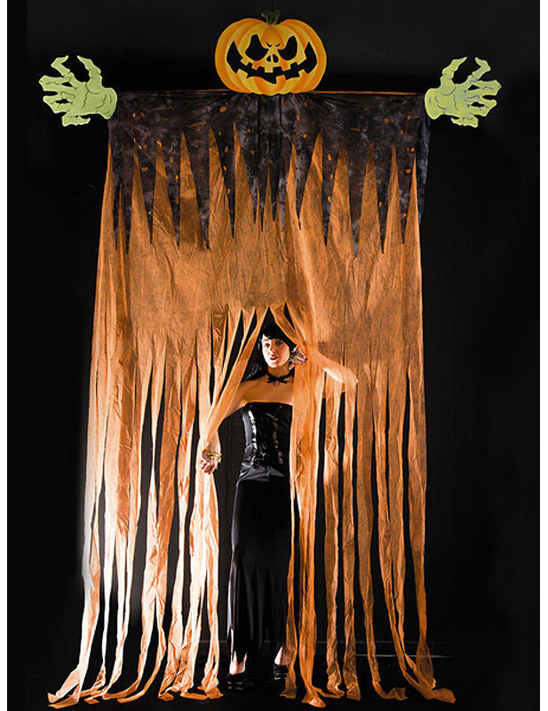 Ta dekoracija vrat predstavlja ogromno bučo z roki narazen. Meri približno 350 cm. Ta dekoracija bučnih vrat bo kot nalašč za oblačenje vhoda na dan čarovnic.