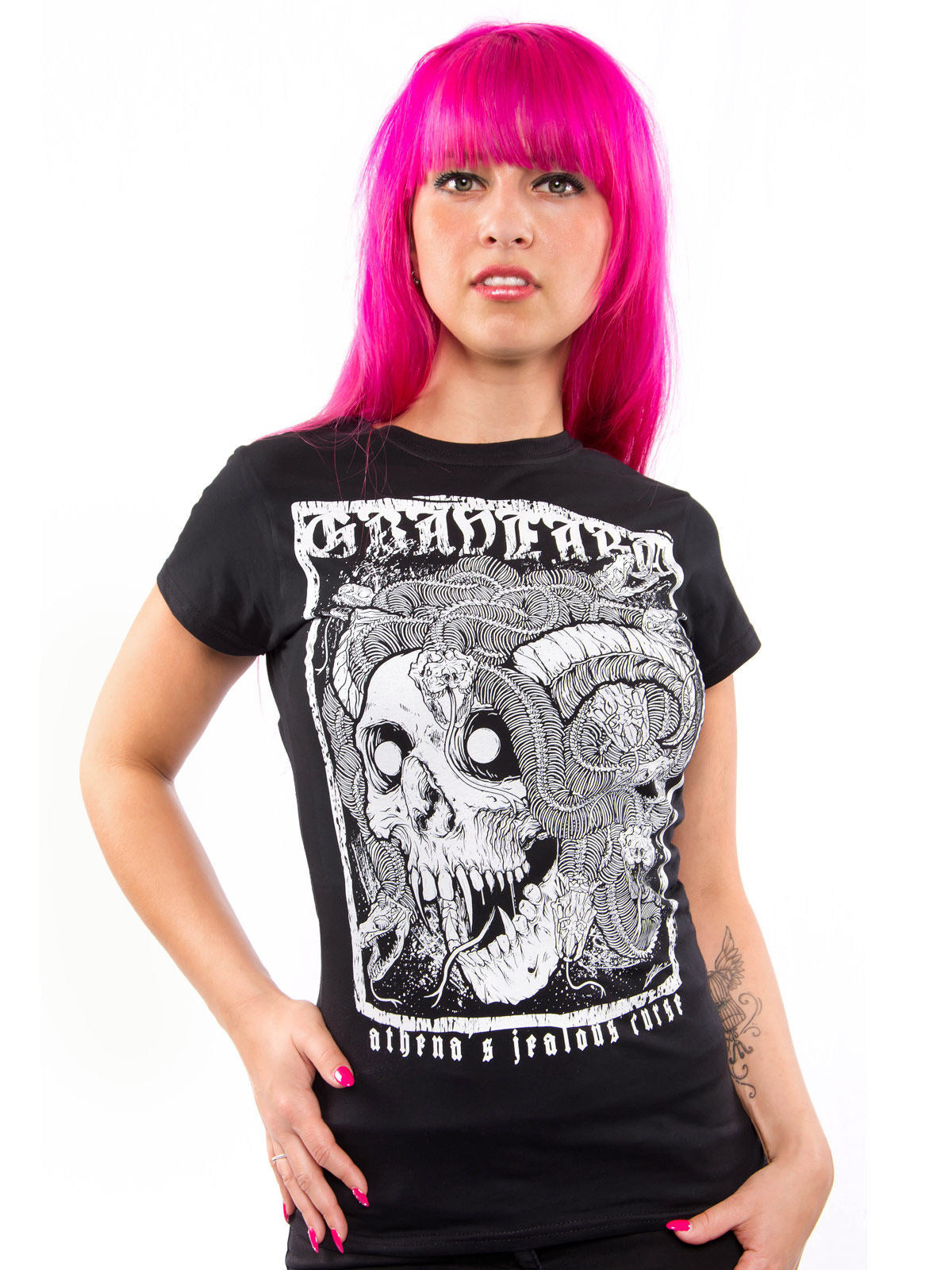 Ta črni top z motivom lobanje za ženske je idealen za uporniški in skrivnosten videz. Okrašen z velikim belim motivom lobanje z rogovi in kačami, vaši obleki doda pridih kamnitega in temnega. Njegov črno-beli kontrast je privlačen in odlično poudari vaš stil. Ta top je udoben in enostaven za kombiniranje s temnimi hlačami ali kratkim krilom, zato bo hitro postal ključni kos vaše garderobe. Popoln za noč čarovnic!