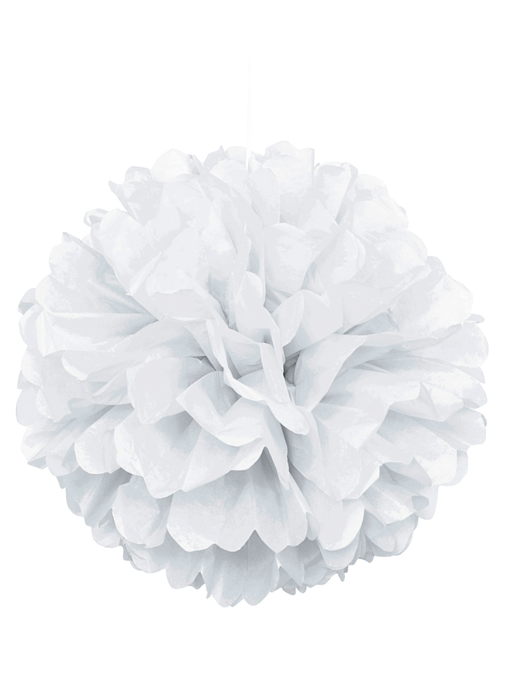 S premerom 40 cm, To beli pompom je narejen iz lahkega papirja. Za dosego veličastnega okrasna kroglaPreprosto nežno odprite plasti papirja. Za enostavno obešanje tega dodatka je priložen bel satenast trak. dekoracija bo dodal pridih elegance poroka, od krst ali a otroška zabava.
