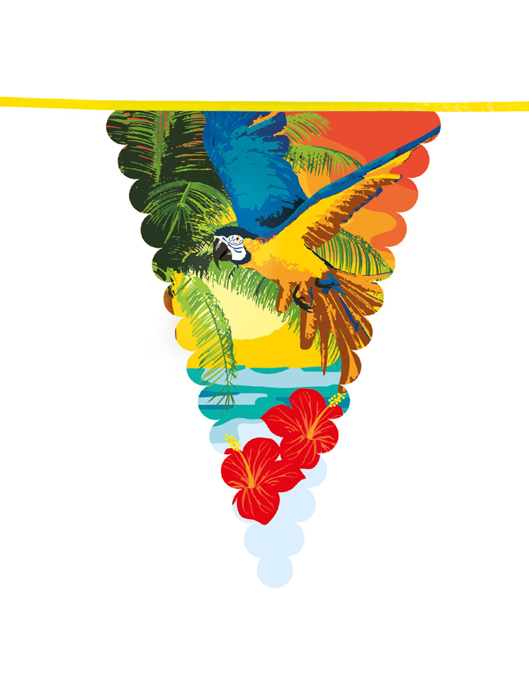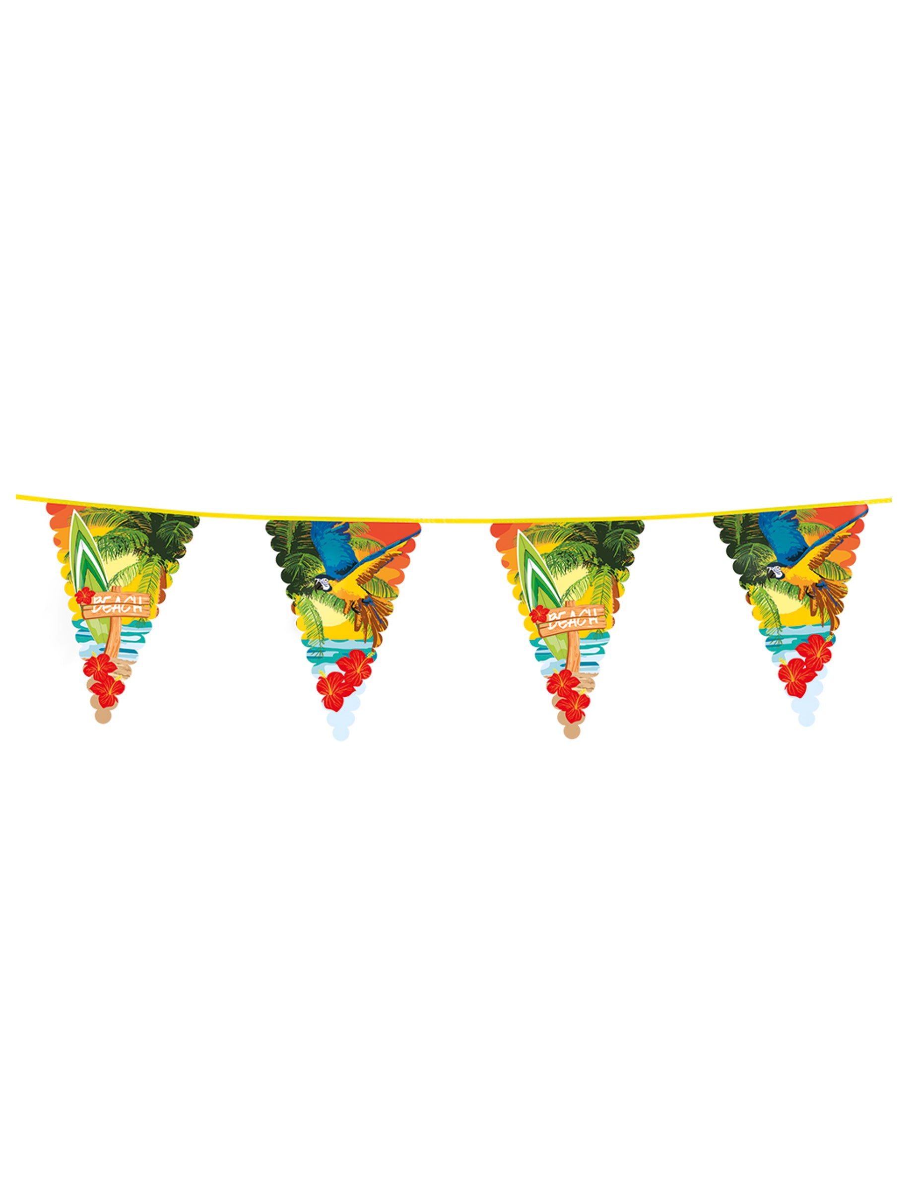 Ta "platna zabava" je sestavljena iz rumene plastične vrvice v višini 6 metrov, okrašenih z velikimi zaenci, visoki 46 cm, v širino 30 cm. V fini in prilagodljivi plastiki se bodo ti zastavici zlahka premikali glede na veter. Nepogrešljiv za zračni dekor na temo Havajev, plaže in poletja.