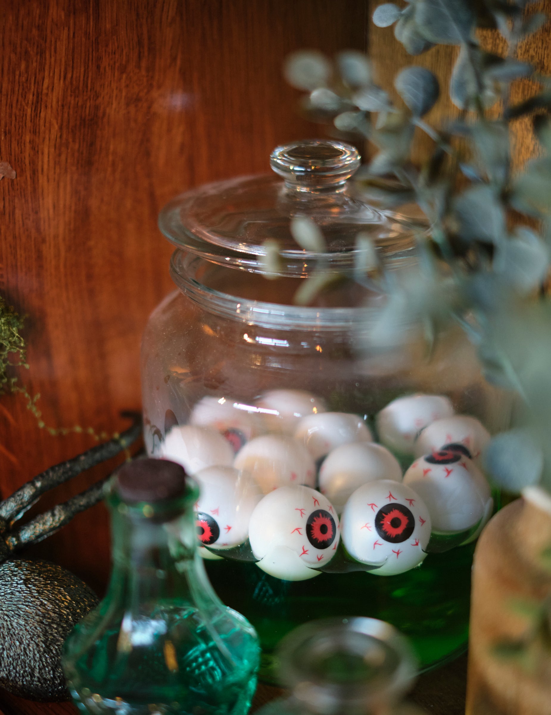 Teh 6 izbočenih okraskov za oči 3,5 cm so idealni za dokončanje grozljivega vzdušja za noč čarovnic. Njihova sferična oblika, njihovi presenetljivi rdeči detajli in njihov realističen slog so popoln element, ki ga lahko škropijo v dekoracijo mize ali na dnu skrivnostne posode. Majhna, izvirna dodatna oprema, s katerim lahko svoje goste presenetite s samo pogledom.