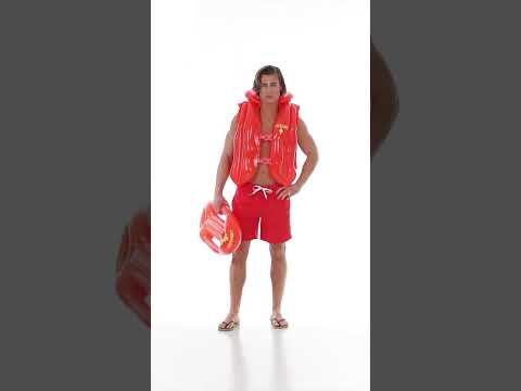 Ta odrasla napihljiva življenjska jakna je oranžna z napisi reševalcev (reševalec) in rumenim reševalcem na sprednji in zadnji strani jopiča. Zapre se z dvema sponkama na sprednji strani. S tem rešilnim jopičem, ki bo dokončal svojo prvo pomoč, se bodo vaši prijatelji počutili varno med večeri, preoblečeni na temo plaže!
