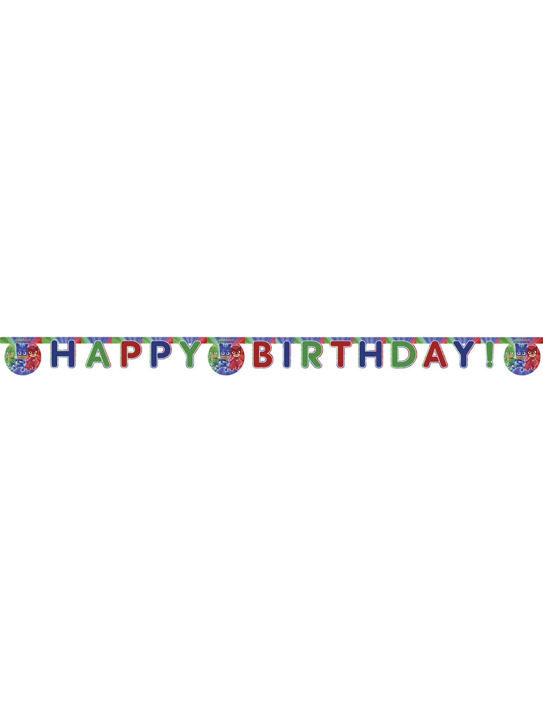 Ta rojstni dan je pod uradno licenco pižamasque. Dolga je približno 2 metra in je sestavljena iz kartonskih nalepk, pa tudi barvnih kartonskih črk, ki tvorijo sporočilo "Happy Birthday". Barve so rdeče, zelene in modre. Predstavljajo barve oblačil pižamasque. Vinjete so okrašene z risanimi liki: Bibou, Yoyo in Gluglu. Svojo girlando lahko zlahka suspendirate po strunah, ki so na koncih. Ta girlanda bo kot nalašč za okrasitev vaše sobe ob rojstnem dnevu vašega otroka!