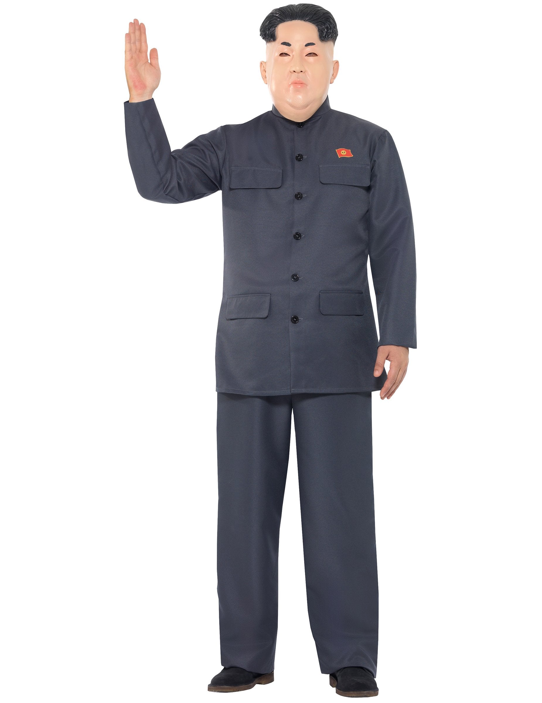 Ta korejski politični kostum je namenjen odraslim. Sestavljen je iz vrha in hlač. Vrh in sive barvne hlače so uradne uniforme Koreje. Siva, jakna z dolgimi rokavi ima štiri lažne žepe. Na ravni trupa ima tudi vtis ponarejene rdeče korejske zastave, pravzaprav je natisnjena z jeznim nasmehom! Hlače so klasične enotne hlače do naravnega reza. Ta preobleka kot diktator iz Severne Koreje, ki jo lahko dokonča maska ​​tega istega diktatorja, ki je na voljo v naši spletni trgovini, bo kot nalašč za odpiranje razprave med večeri na temo politikov ali med karnevalom.