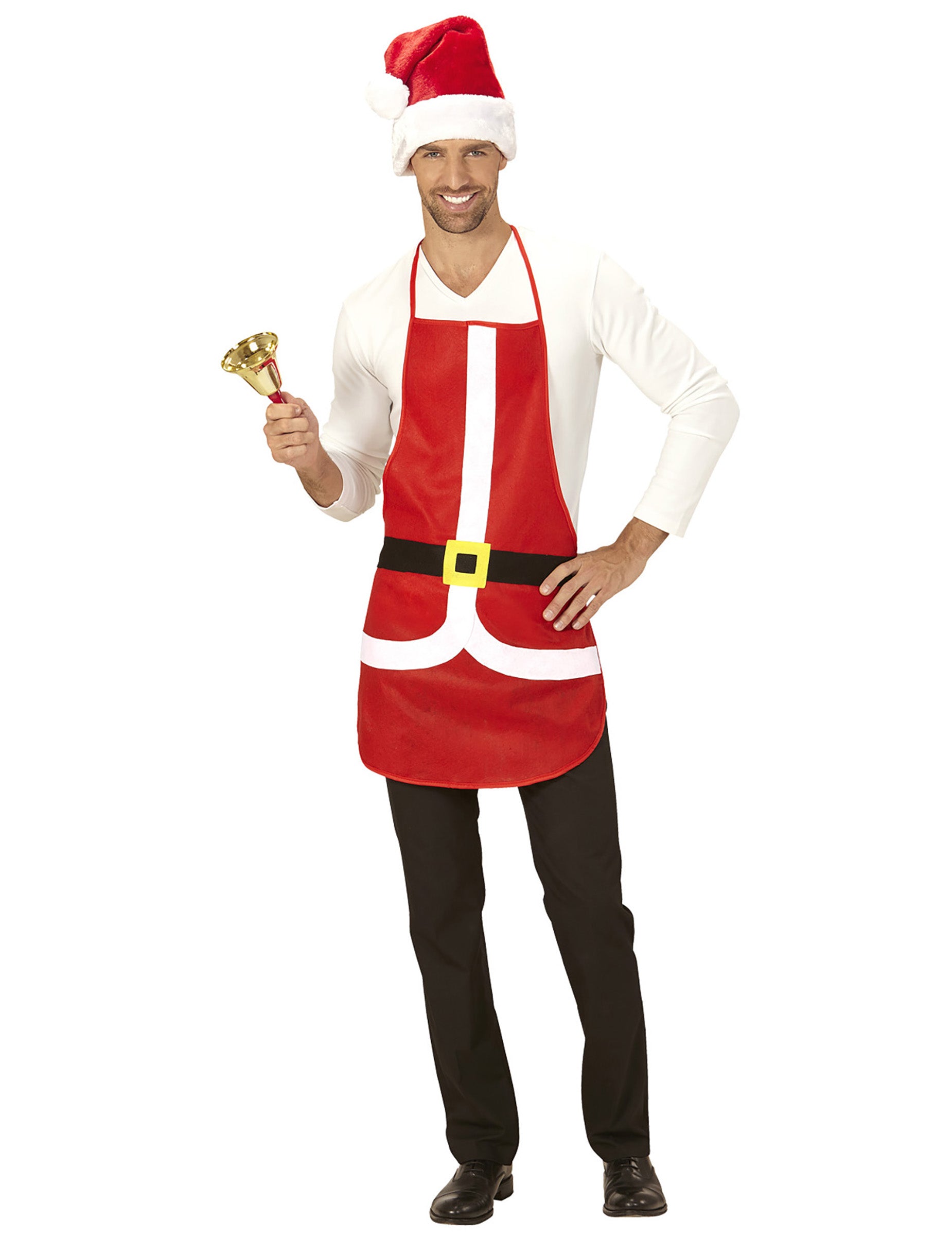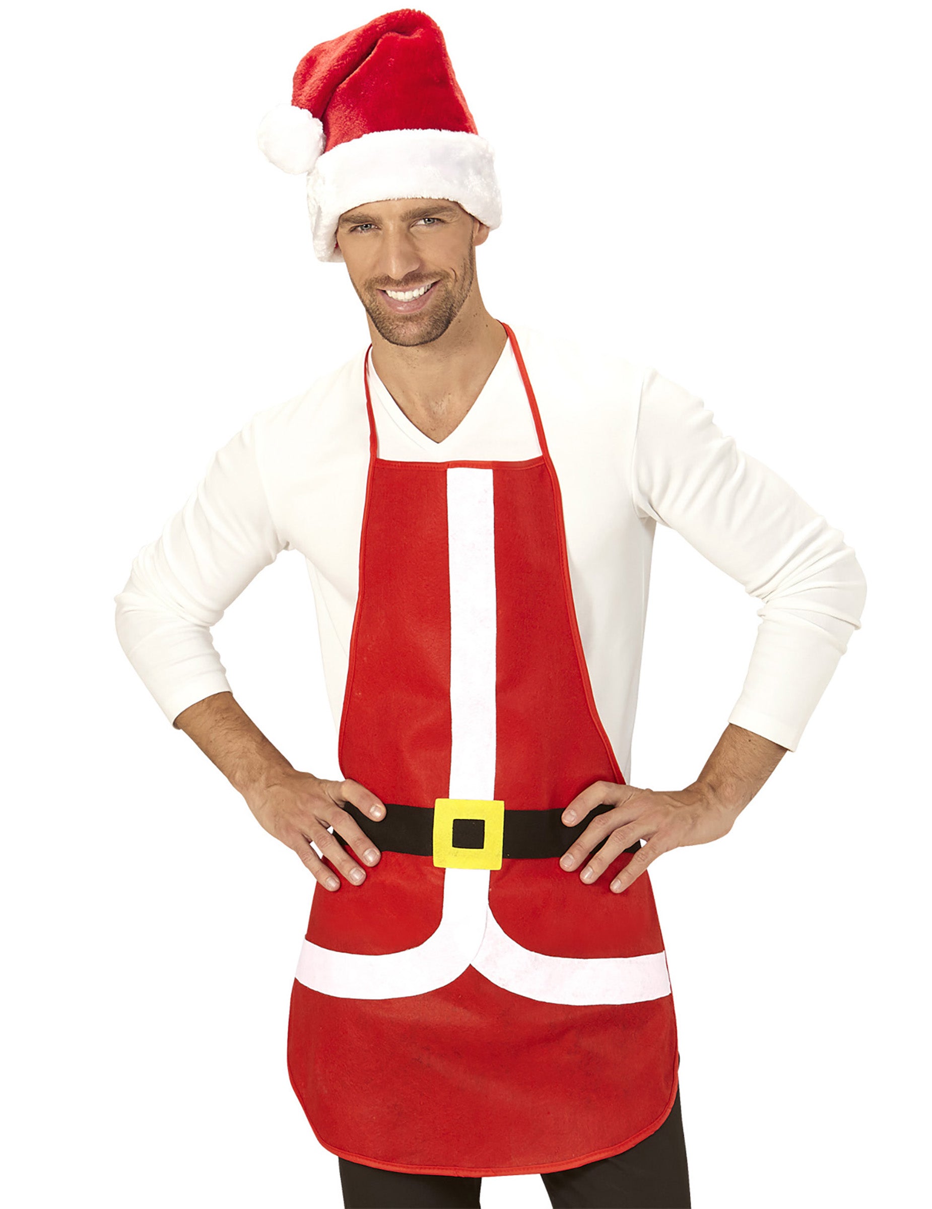 Ta predpasnik, prodan sam, meri približno 75 cm x 54cm. Ta predpasnik je božični predpasnik v barvah Božičkovega kostuma. Ta predpasnik je torej rdeč z vtisom belih trakov, ki posnemajo robove suknjiča. Končno za učinek še bolj zvest temu emblematičnemu značaju, ki je Božiček, je vtis črnega pasu z rumeno zanko prisoten na ravni velikosti. Ta predpasnik bo kot nalašč za majhne kuharje, ki bodo za praznično sezono pripravili dobre majhne jedi!