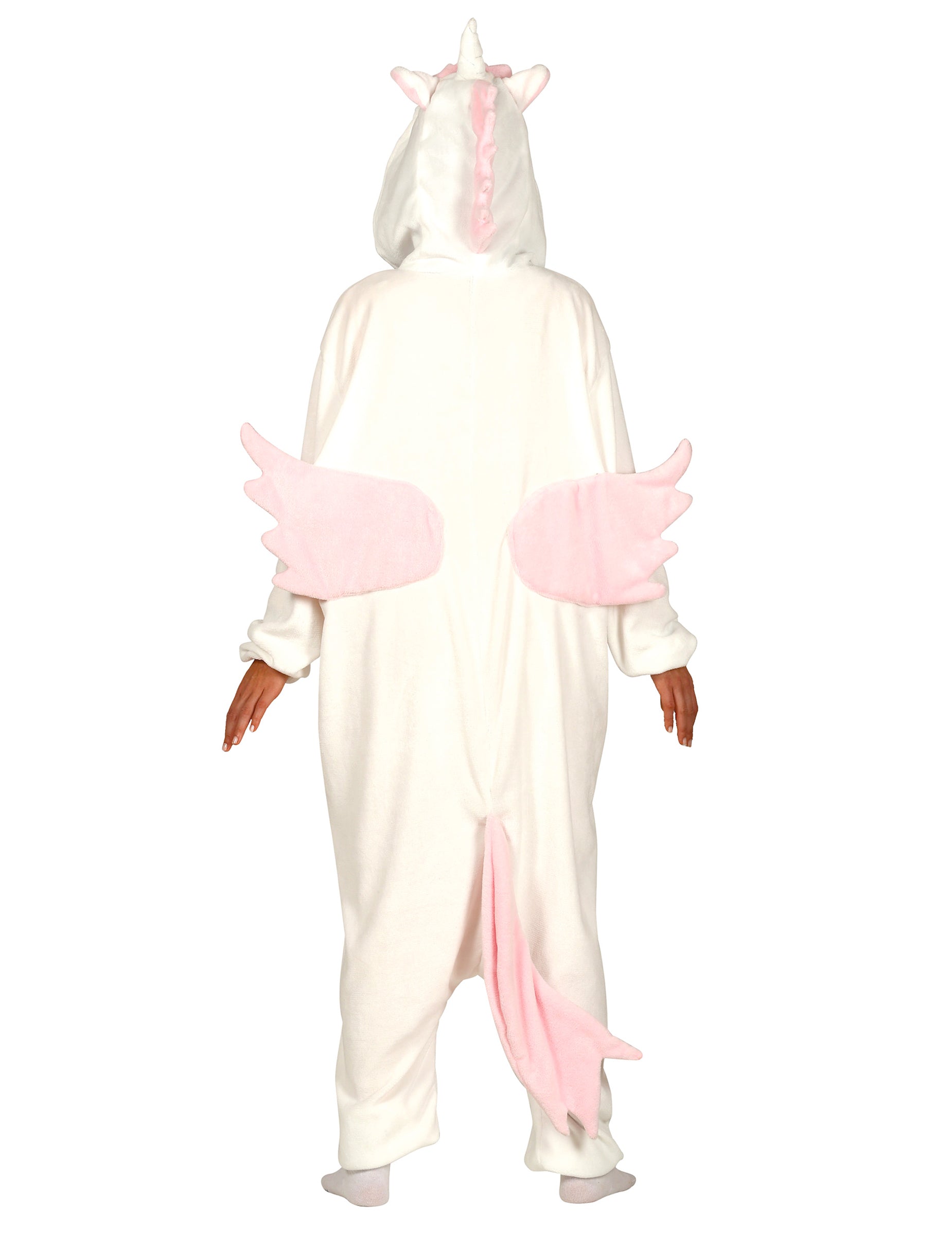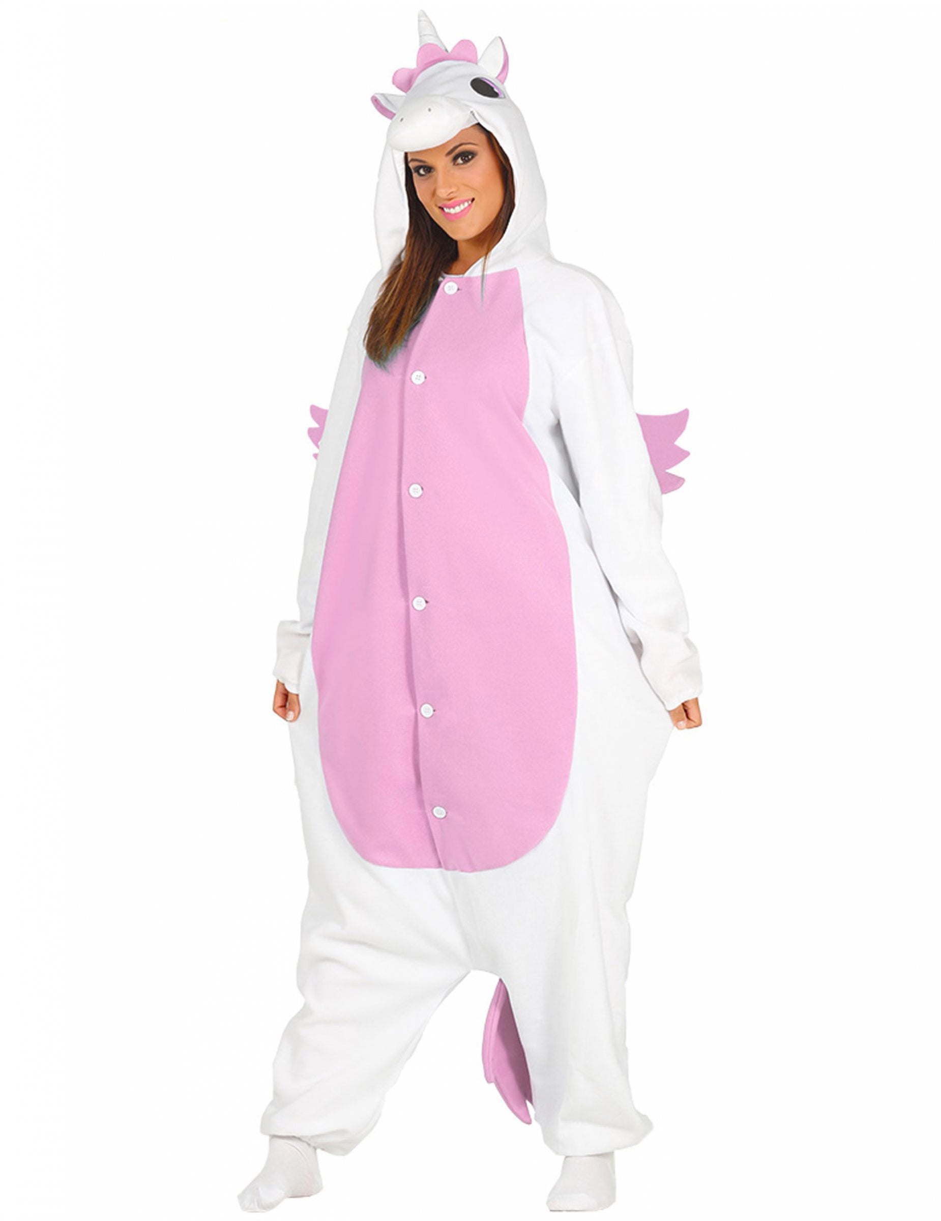 Ta samorožni kostum za ženske je sestavljen iz kombinacije. Roza in bela kombinacija je dolga doslej. Okrašena je s kapuco, ki predstavlja glavo samoroga s svojim roza grebenom in rogom. Obleka je okrašena s parom roza kril in repom, ki je prišit na zadnji strani. Zahvaljujoč mozoljem se prilega in pritrdi na sprednjo stran. Odločite se za ta vroče kostum samoroga za odrasle ob karnevala!