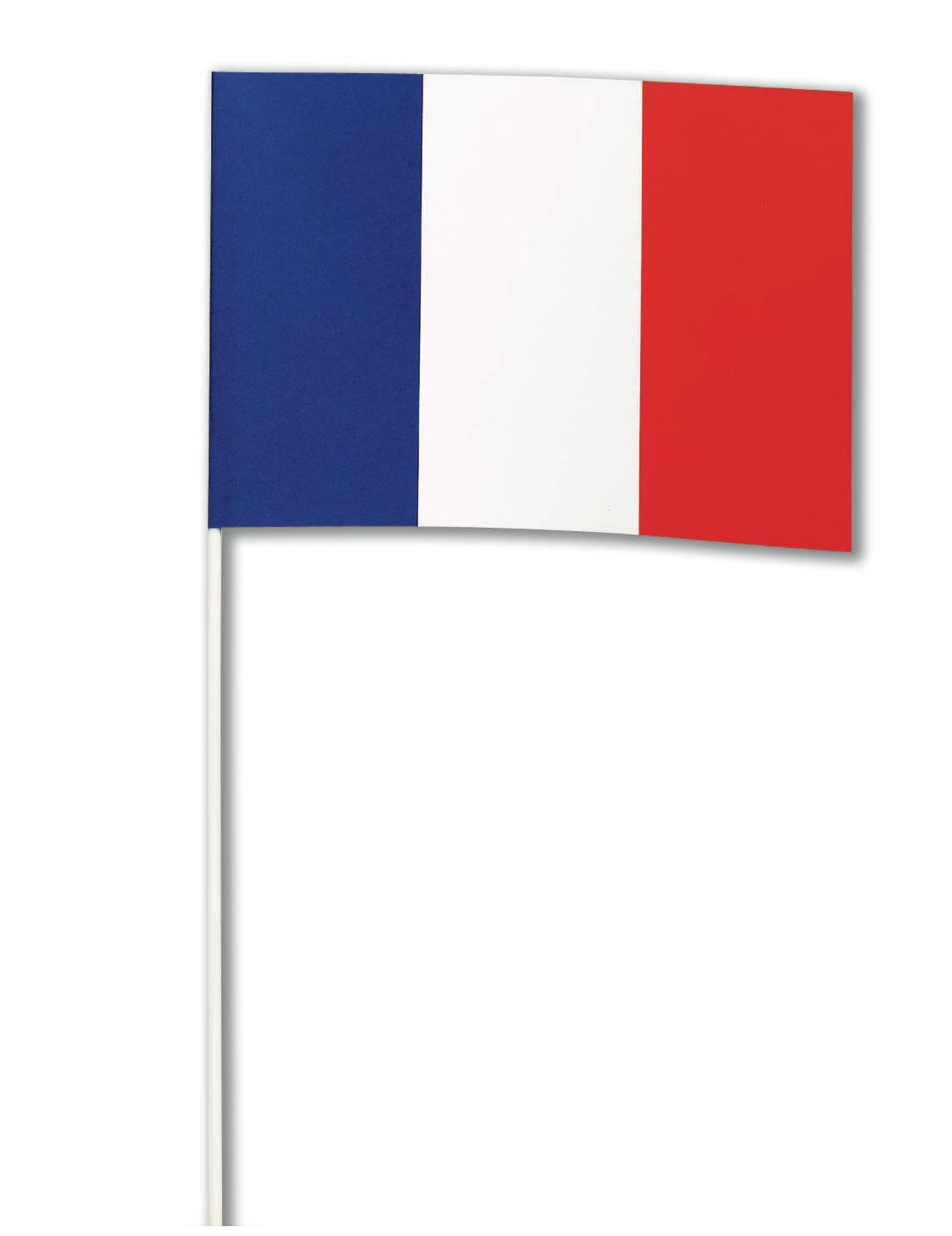 Ta francoska zastava papirja za podporo je trikolor modra bela rdeča. Izmeri približno 14 x 21 cm in ima majhno palico, ki vam bo omogočila enostavno držanje roke. Ta zastava bo kot nalašč za podporo najljubše francoske ekipe med nogometno tekmo!