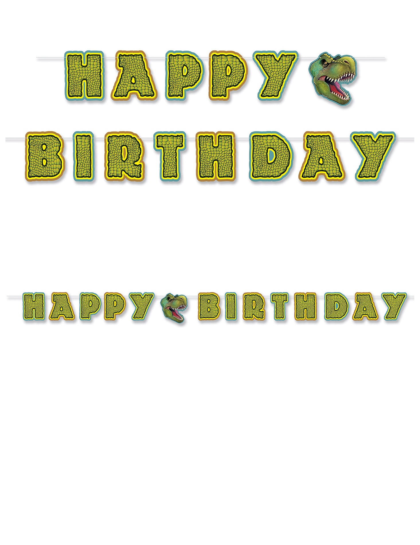 To temo dinozavra je mogoče sestaviti. Meri približno 15,24 x 3 m dolge. Če želite sestaviti to girlando, morate vrv skozi luknje v transparentu, da pridobite girland pisem. Zelena barva, ta girlanda tvori napis "Happy Birthday" z glavo dinozavra med obema besedama. Da bi proslavili rojstni dan enega od vaših ljubljenih oboževalcev dinozavrov, bo ta girland popoln!