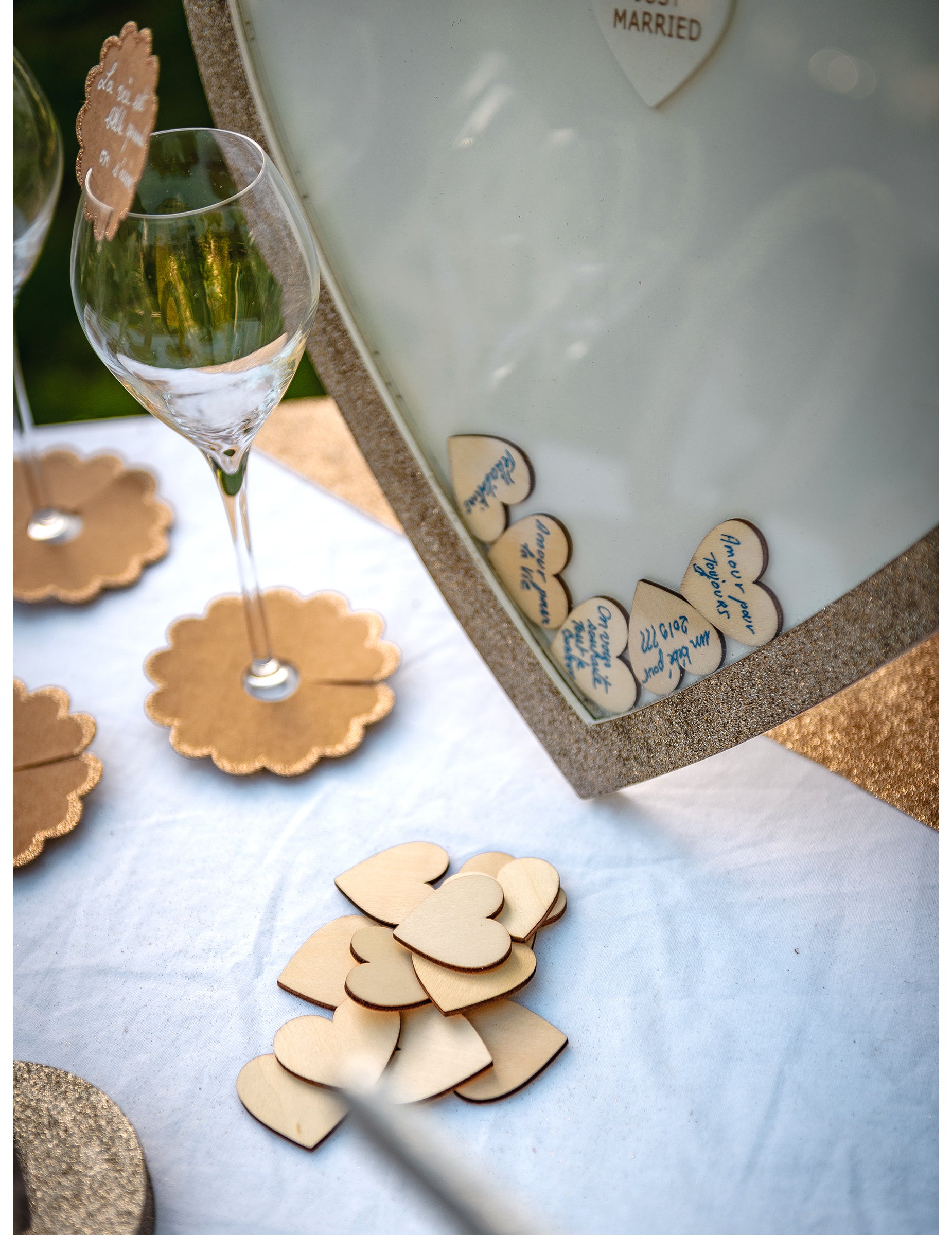 Knjiga gostov z bakrenim bleščečim okvirjem in lesenimi srčki, 37 x 40 cm cm