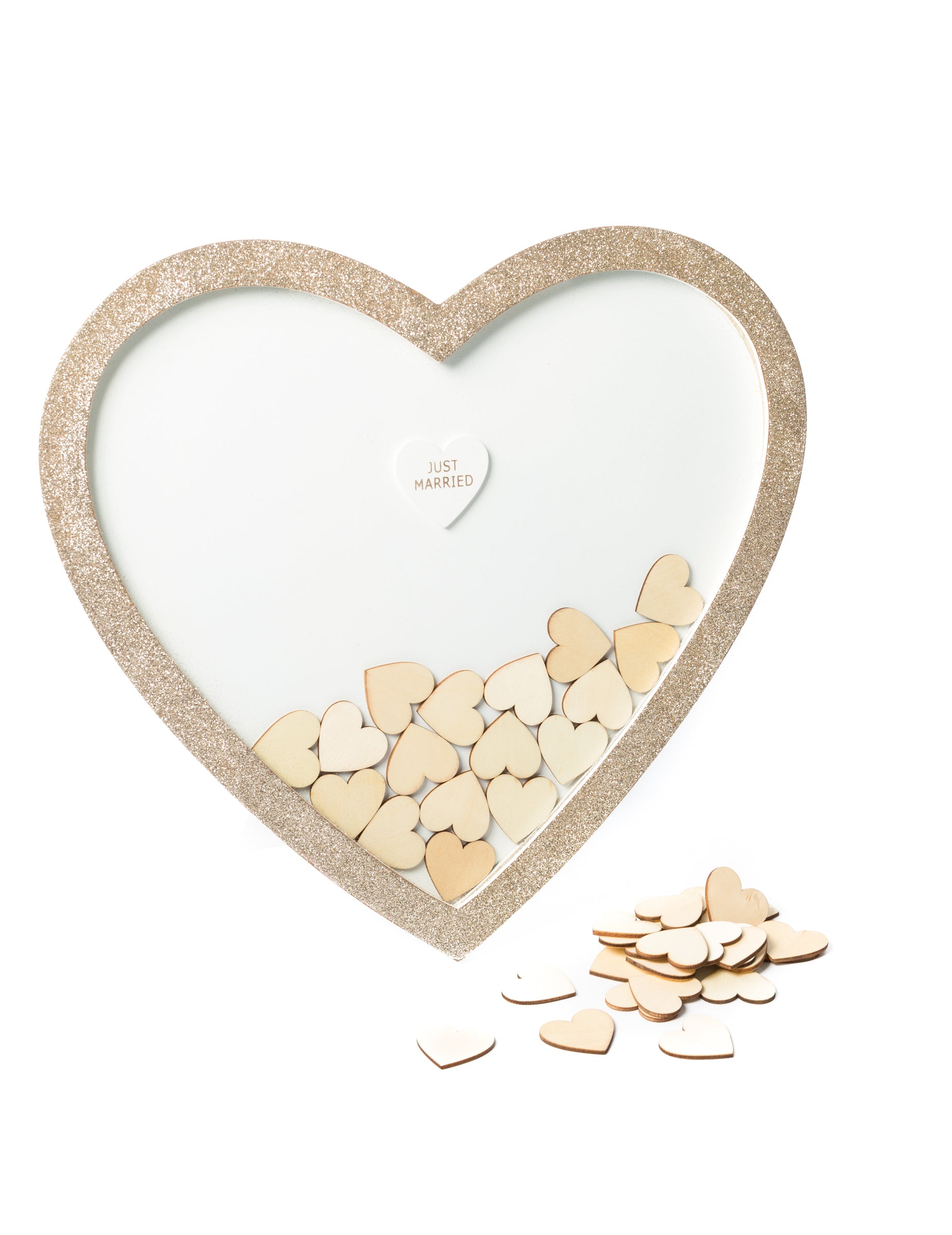 Izboljšajte svoj sprejem s tem originalna poročna knjiga gostov v obliki velikega okvir 37 x 40 cm opremljen s 60 srca lesen.
