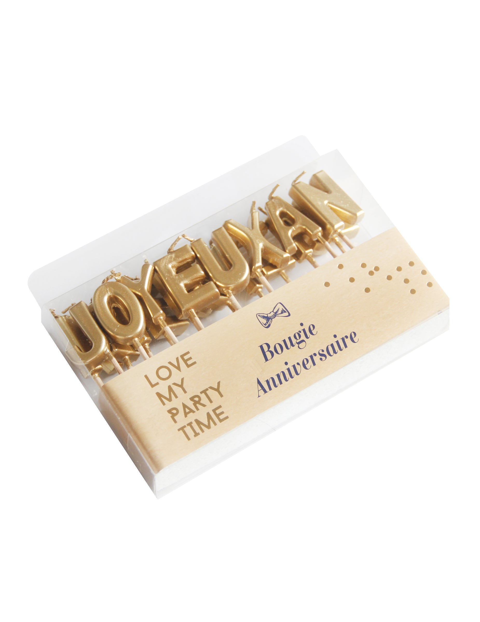 Ta serija od 18 sveče Voščeni model ima kovinsko zlato prevleko in meri približno 2,5 do 3 cm. Skupaj tvorijo sporočilo " Vse najboljše za rojstni dan "Za okrasitev peciva."