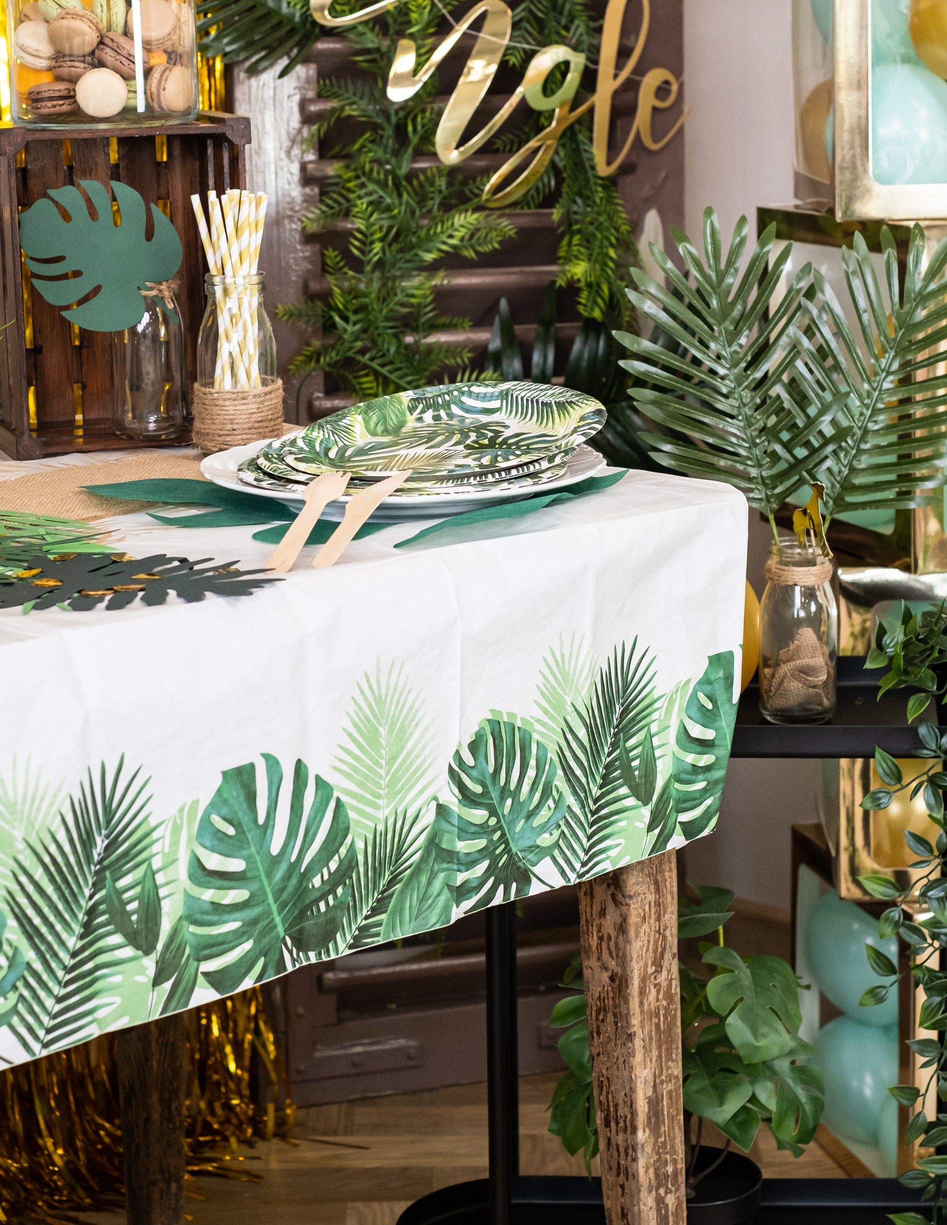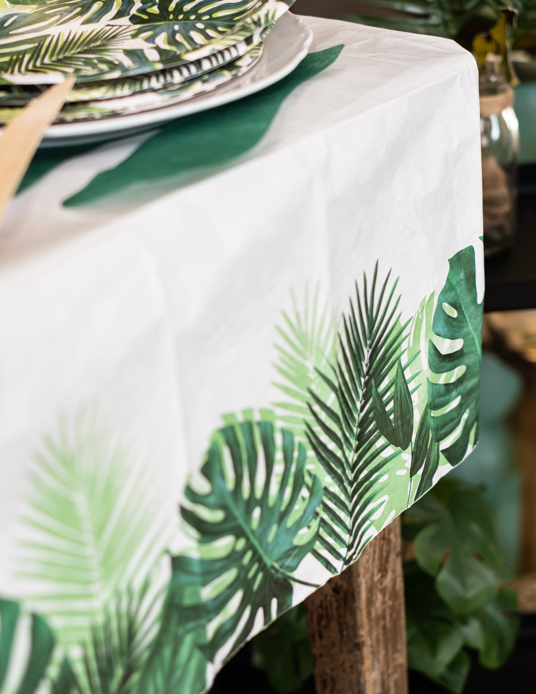 Tropski belo-zelen papirnati prt 180 x 120 cm