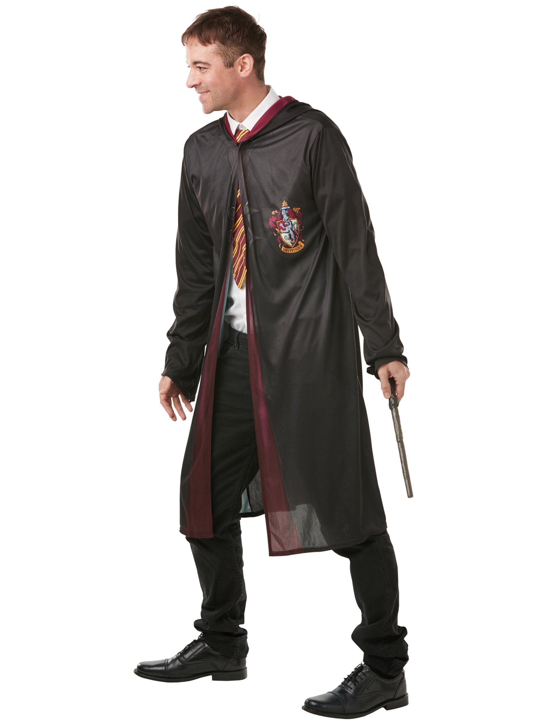 Ta prikrivanje Harryja Potterja za odrasle je pod uradno licenco. Sestavljen je iz ogrinjala, palice in kravate. Dolga ogrinjala je črna z Gryffindorjevim emblemom in gumbi, natisnjenimi na prsih. Čarobna palica je plastika. Končno je kravata v barvah Gryffindorja zaključila ta kostum. Ta kostum Harryja Potterja bo kot nalašč za vaš naslednji prikrit večer ali za noč čarovnic.