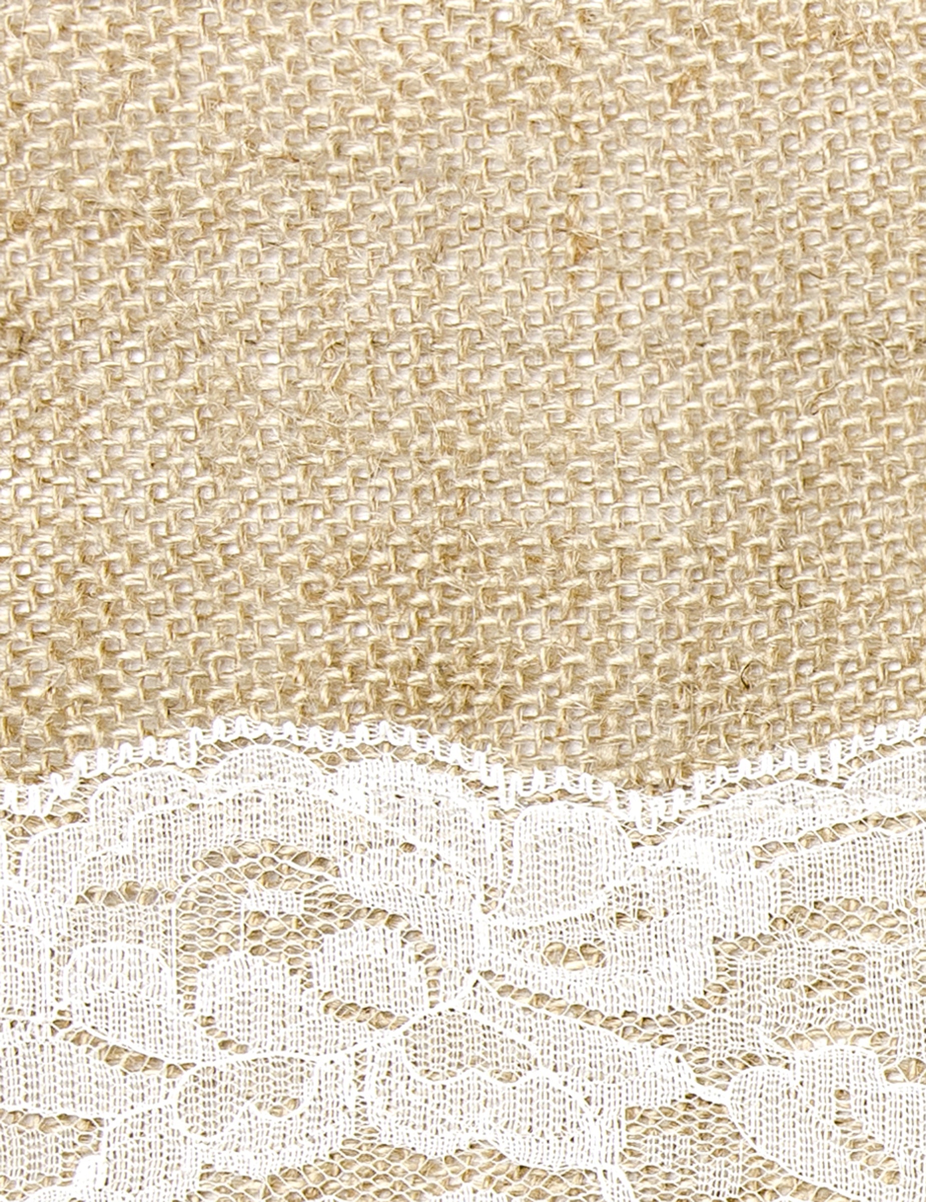 Sublimez votre réception avec ce chemin de table en toile de jute naturelle orné d'une bande de dentelle centrale. D'une dimension de 28 cm par 2,75 m, cet accessoire est ajustable et se découpe aisément selon vos besoins. Idéal pour instaurer une ambiance bohème et champêtre, ce chemin de table sera l'élément phare de votre décoration de table lors d'un mariage ou d'un événement romantique.