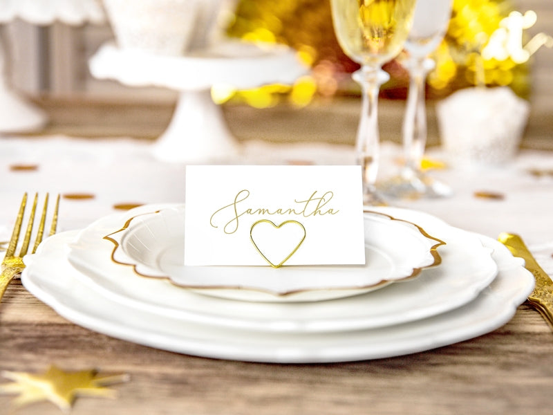 Izboljšajte svojo mizo s tem kompletom 10 kosov karte z lokacijami zlate barve. Ti elegantni dodatki so oblikovani kot srce prikažejo dimenzijo približno 2,5 cm. Idealno za porokati malčki srca nam bo omogočilo, da nakažemo kraji vaših gostov s prefinjenostjo.