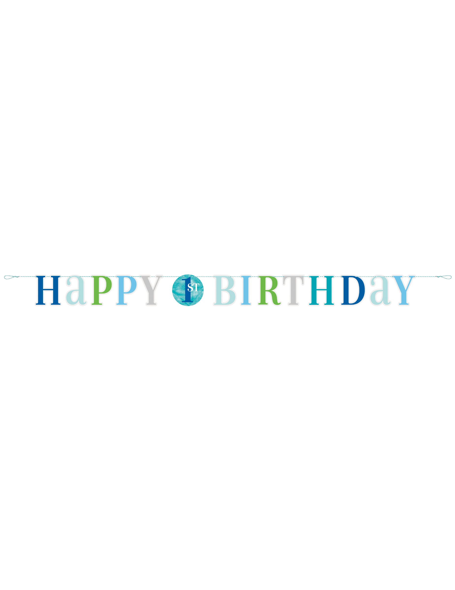 Praznujte prva obletnica vašega otroka s tem venec iz kartona s skupno dolžino 1,8 m. Na njem je sporočilo " Vse najboljše za 1. rojstni dan "v harmoničnih odtenkih modre, sive in zelene. Zaradi končnih pritrdilnih elementov je zelo enostavna za namestitev," venec bo osrednji del vaše praznične dekoracije za to nepozabno priložnost.